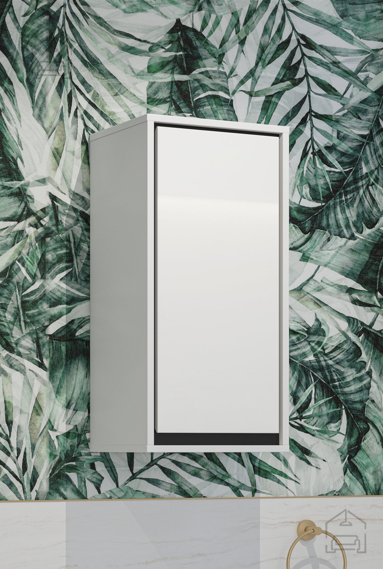 Die schwarzen Türen setzen einen stilvollen Kontrast zur weißen Oberfläche und sorgen für ein ansprechendes Gesamtbild. Innen bietet der Schrank zwei geräumige Einlegeböden, die ausreichend Platz für Bücher, Dekoration oder andere Lieblingsstücke schaffen. Optional ist eine LED-Beleuchtung erhältlich, die Ihrem Schrank eine zusätzliche Dimension verleiht und für stimmungsvolles Licht in Ihrem Zuhause sorgt.