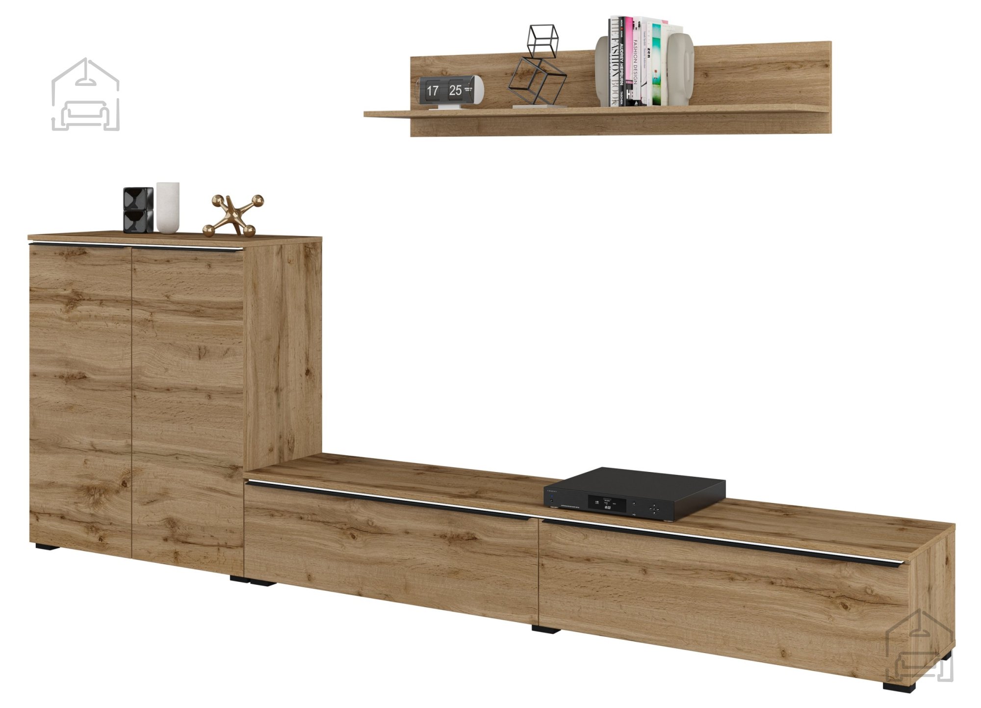 Wenn Sie eine elegante, funktionale und hochwertige Lösung zum Aufbewahren und Präsentieren Ihrer Lieblingsstücke im Wohnzimmer suchen, ist die Wohnwand Tana genau das Richtige. Mit ihrem zeitlosen Design und der präzisen Verarbeitung wird sie schnell zum Blickfang in Ihrem Zuhause. Verleihen Sie Ihrem Wohnbereich mit diesem stilvollen Möbelstück von Moebelundmoebel.at einen Hauch von Eleganz und Funktionalität.
