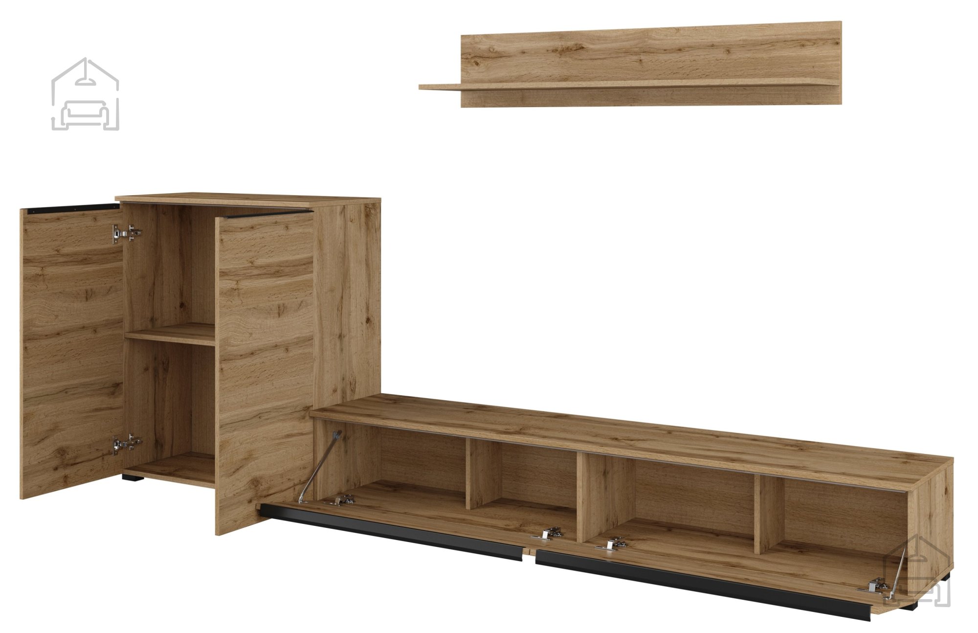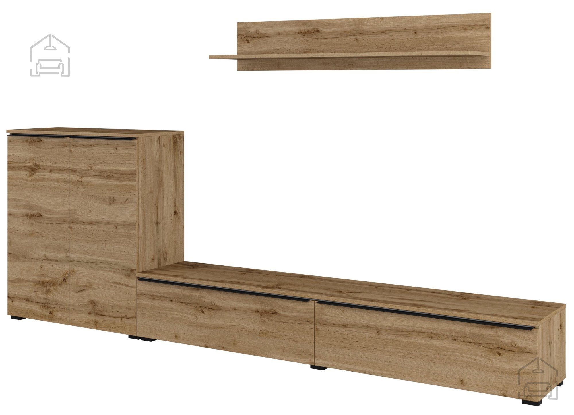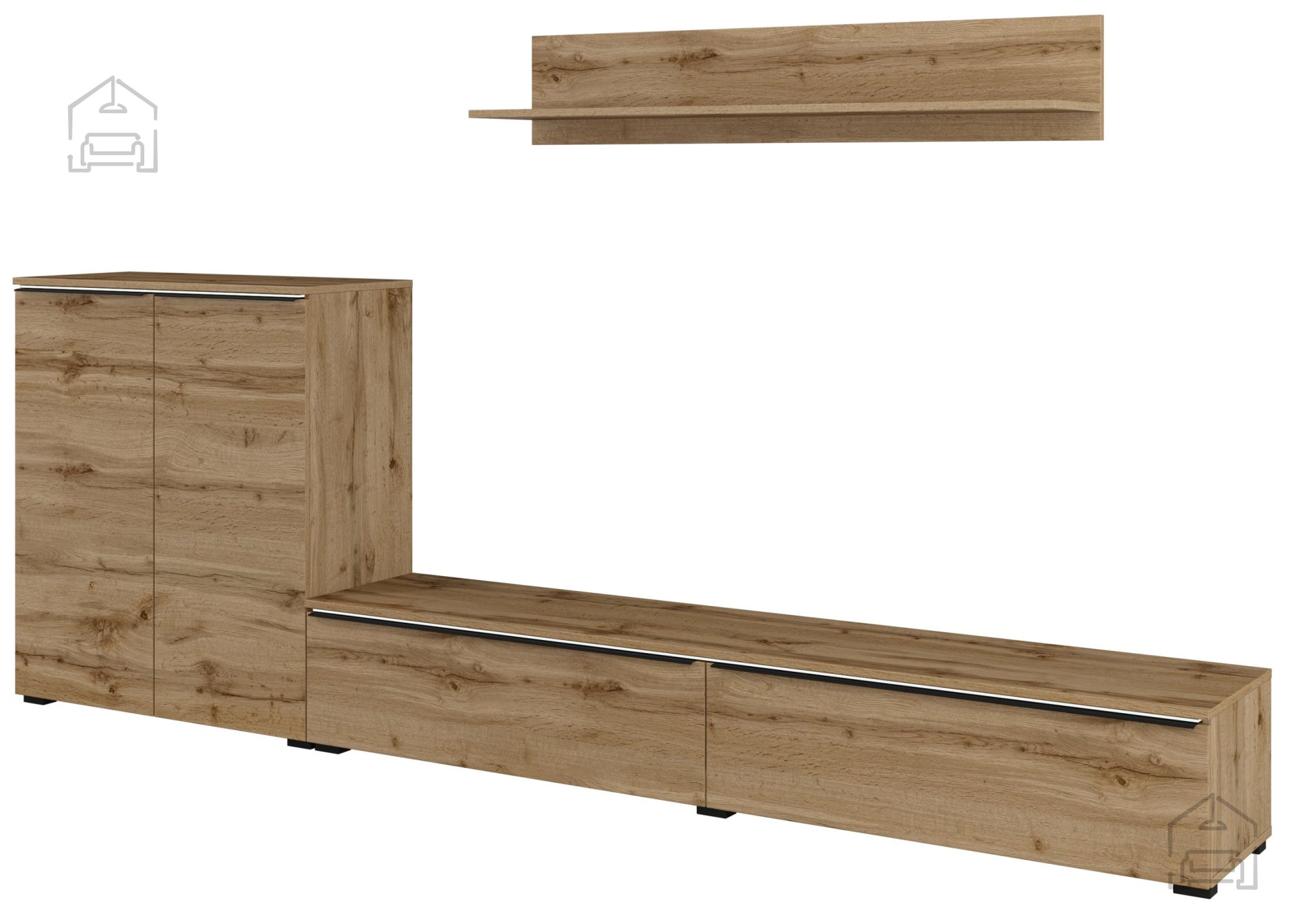 Wir präsentieren Ihnen die Wohnwand Tana – Eiche Votan – 24N0NS09, die Eleganz und Funktionalität in einem harmonischen Design vereint. Dieses besondere Möbelstück ist darauf ausgelegt, jedes Wohnzimmer aufzuwerten und gleichzeitig praktischen Stauraum für den modernen Alltag zu bieten.