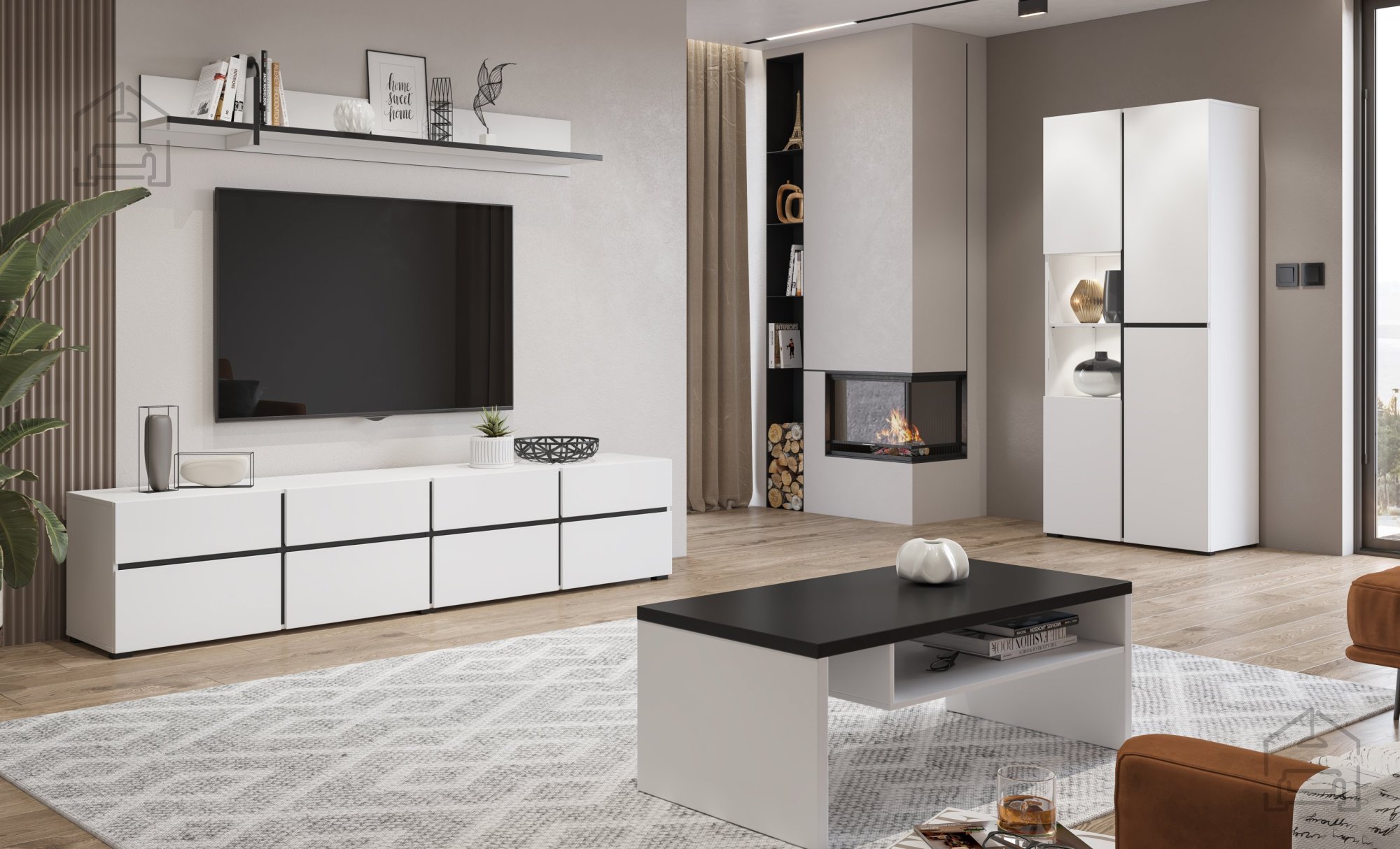 Entdecken Sie ein hochwertiges Möbelstück, das modernes Design mit zeitloser Eleganz vereint – die Vitrine Cross – Weiß/Weiß-Schwarz – 249WMY12. Dieses außergewöhnliche Modell wurde für alle entworfen, die ihrem Wohnraum einen stilvollen und zugleich praktischen Akzent verleihen möchten. Mit den Maßen 180x23x23 cm ist diese Vitrine ideal für verschiedene Bereiche Ihres Zuhauses geeignet und bietet ausreichend Platz zum Aufbewahren und Präsentieren Ihrer Lieblingsstücke.