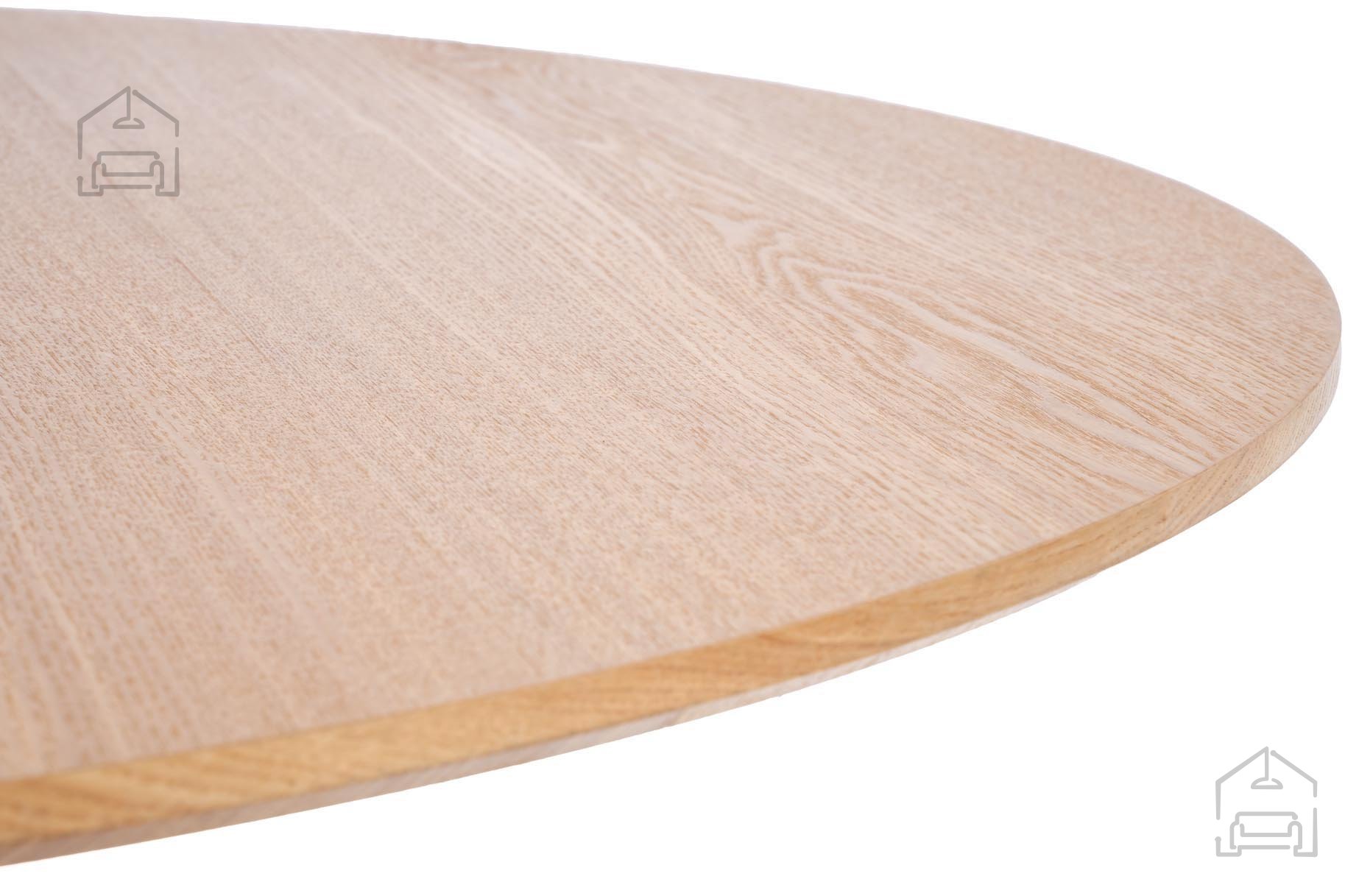 Der Tisch ist aus hochwertigem MDF-Material gefertigt, das für seine Haltbarkeit und Widerstandsfähigkeit bekannt ist. Die Oberfläche ist mit natürlichen Tönen überzogen, was Wärme und Eleganz in Ihren Raum bringt. Stabilität und Festigkeit werden durch pulverbeschichteten Stahl gewährleistet, der dem Tisch ein modernes und robustes Aussehen verleiht.