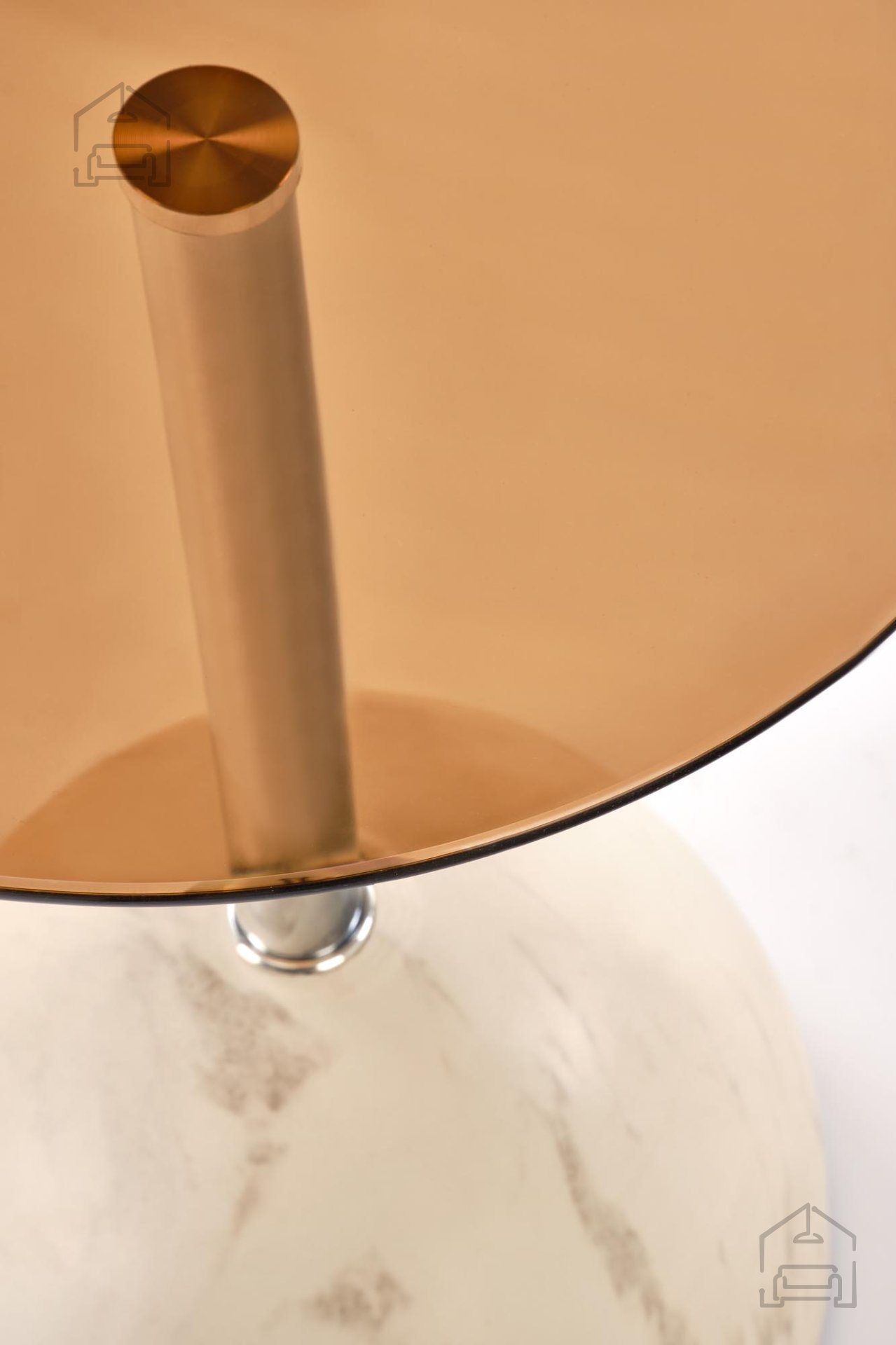 Elegantno oblikovana miza Ariana s svojo bež marmorno površino in jantarjem obarvanim podnožjem prinaša občutek topline in prefinjenosti v vsak prostor. Ta klubska miza je idealna izbira za vse, ki cenijo dovršeno oblikovanje in pozornost do detajlov. Njena nevtralna barvna paleta omogoča enostavno usklajevanje z različnimi stili notranje opreme, od moderne do klasične.