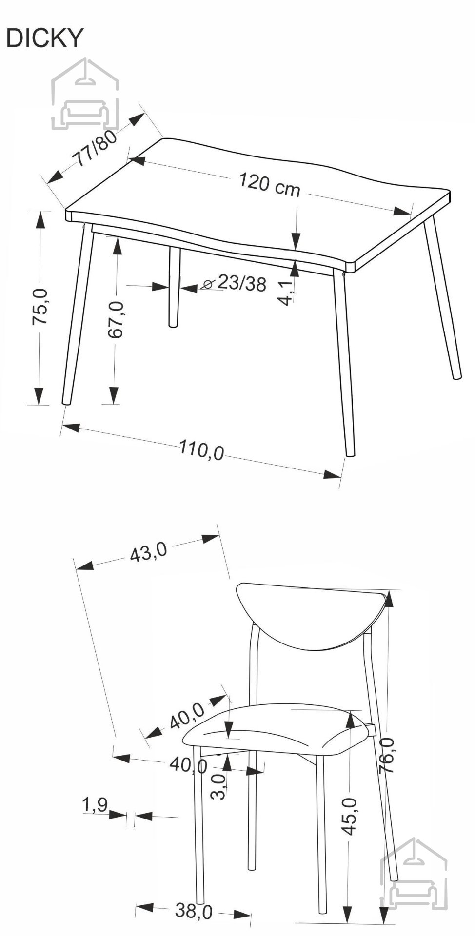 Der Kauf des Esszimmer-Sets Dicky bringt zahlreiche Vorteile. Neben der offensichtlichen ästhetischen Anziehungskraft und Funktionalität wird dieses Set in der renommierten Fabrik Halmar in China hergestellt, was ein hohes Maß an Qualität und Verarbeitung garantiert. Das Set ist nicht ausziehbar, was es ermöglicht, seine Stabilität und Ästhetik ohne zusätzliche Mechanismen zu bewahren, die sein Aussehen oder seine Struktur beeinträchtigen könnten. Das bedeutet, dass es ideal für kleinere Räume oder intimere Essumgebungen ist. Es ergänzt sich auch hervorragend mit natürlichen Farbtönen, was eine einfache Kombination mit anderen Möbelstücken ermöglicht. Egal, ob Sie Ihr Zuhause renovieren oder eine neue Wohnung einrichten, das Esszimmer-Set Dicky wird zum Mittelpunkt Ihres Esszimmers.