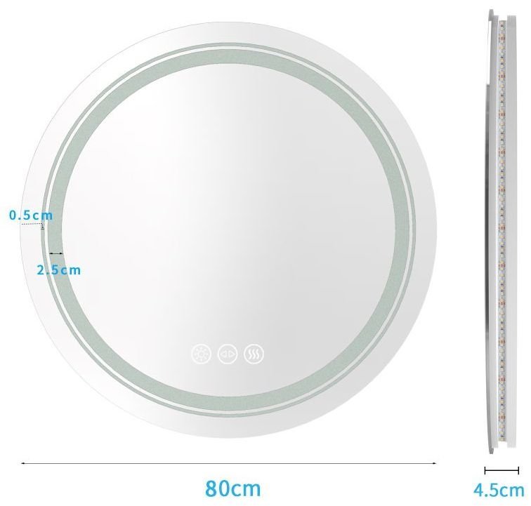 Kopalniško ogledalo Dover 80 je več kot le navadno ogledalo; predstavlja popolno kombinacijo sodobnega dizajna in napredne tehnologije, ki bo spremenila vašo kopalnico v prostor prefinjenosti in udobja. Z dimenzijami 80x3.7x80 cm se odlično prilega v katerokoli kopalnico, ne glede na njen stil ali velikost.