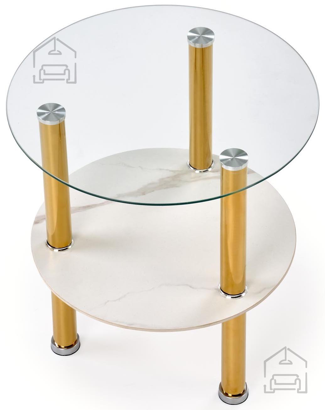 Die Ästhetik des Couchtisches Ducat S ist so gestaltet, dass sie zu jedem modernen Zuhause passt. Seine minimalistische Form und Farbkombination – transparent, gold und weißer Marmor – ermöglichen eine einfache Kombination mit verschiedenen Einrichtungsstilen. Dieser Tisch ist nicht nur optisch ansprechend, sondern auch äußerst praktisch. Seine Oberfläche ist leicht zu reinigen und zu pflegen, was bedeutet, dass Sie seinen Glanz während der gesamten Nutzungsdauer erhalten können.
