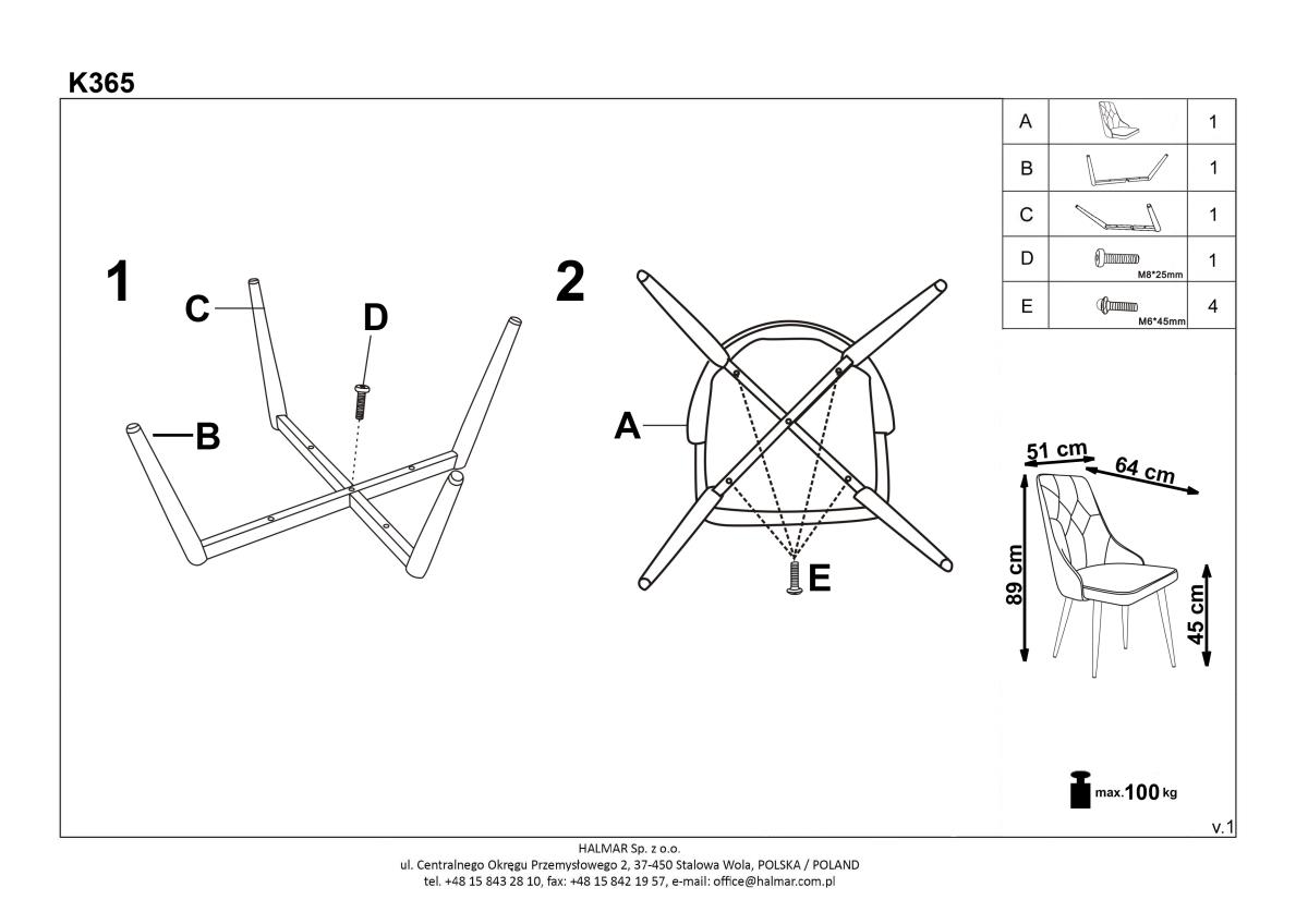 Izdelan v priznani tovarni Halmar, ki je sinonim za kakovostno pohištvo, vam stol K365 zagotavlja zanesljivost in dolgotrajno zadovoljstvo. Izvor iz Kitajske zagotavlja tudi dostopno ceno, ne da bi se pri tem odrekli kakovosti.