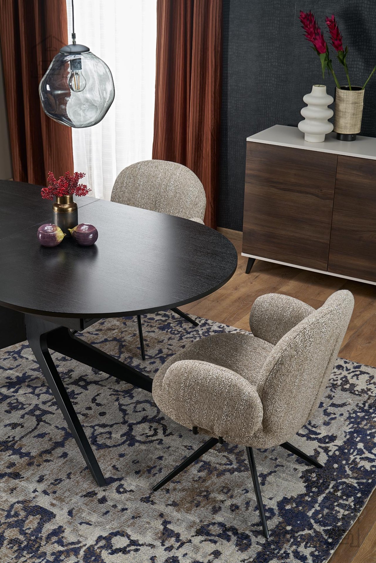 Der Esstisch Sandro ist aus hochwertigen Materialien gefertigt. Seine Tischplatte besteht aus laminiertem MDF mit Melamin, was Haltbarkeit und Beständigkeit gegen Kratzer und Flecken gewährleistet. Außerdem wird pulverbeschichteter Stahl für die Tischbeine verwendet, was einen modernen Touch verleiht und Stabilität sichert. Die schwarze Farbe des Tisches bringt Eleganz und Neutralität, die sich nahtlos in verschiedene Inneneinrichtungen einfügt.