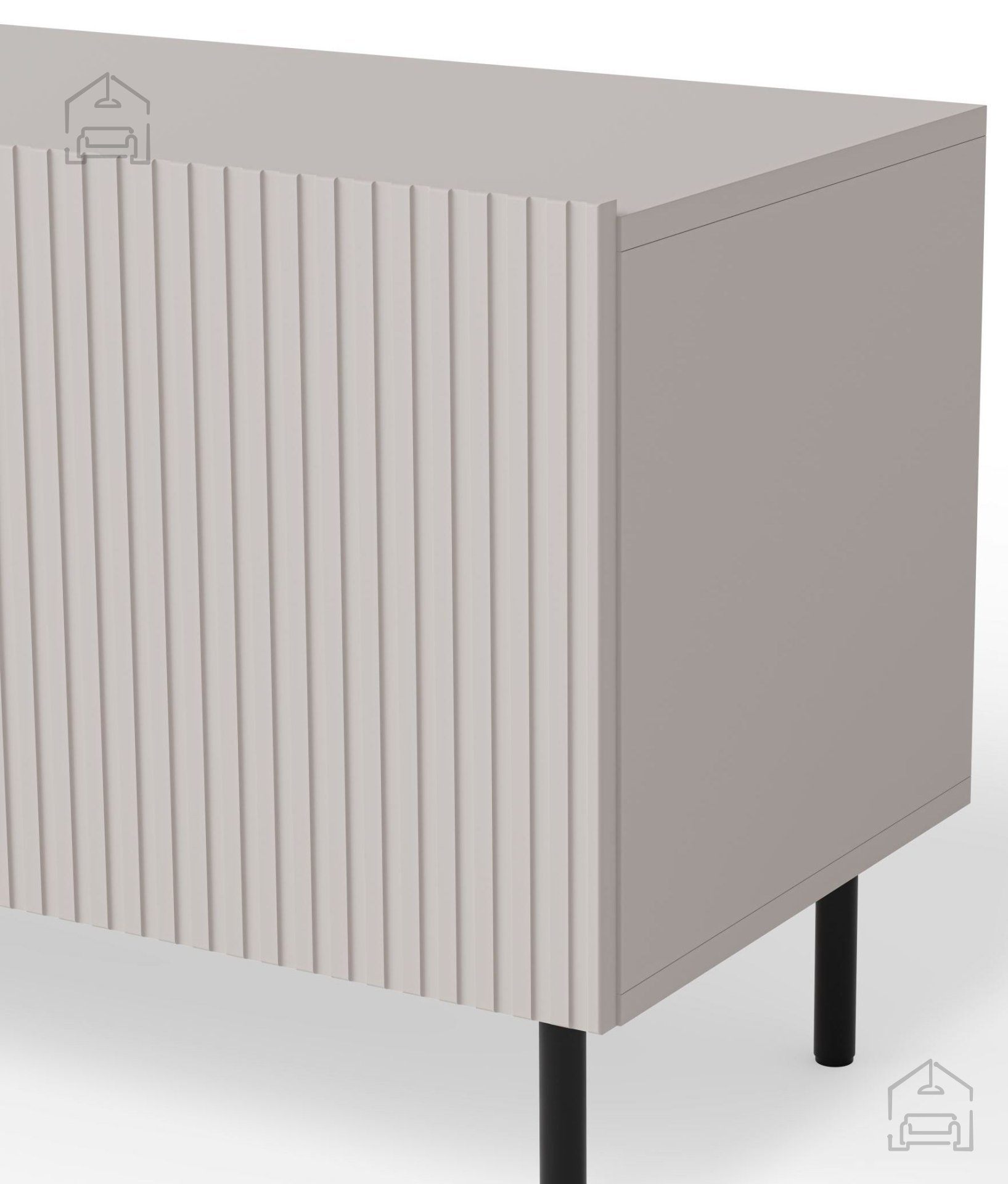 Produktabmessungen: 200x40x54 cm. Die RTV Kommode Paxos ist sorgfältig aus hochwertigen Materialien gefertigt, darunter laminierte Spanplatte, laminiertes MDF und pulverbeschichteter Stahl, was eine langanhaltende Haltbarkeit und Ästhetik gewährleistet. Diese Materialkombination verleiht der Kommode ein modernes Aussehen, das sich nahtlos mit einer Vielzahl von Einrichtungsstilen verbinden lässt.