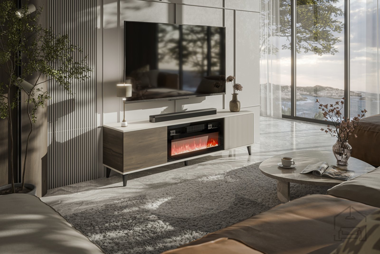 4. Dodatna funkcionalnost: vgrajen električni kamin ponuja dodatno toplino in prijetno vzdušje brez potrebe po tradicionalnih kaminih.