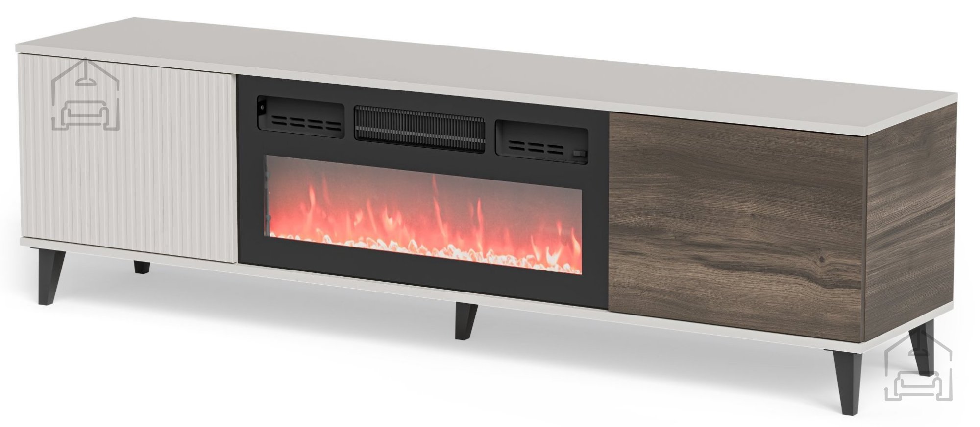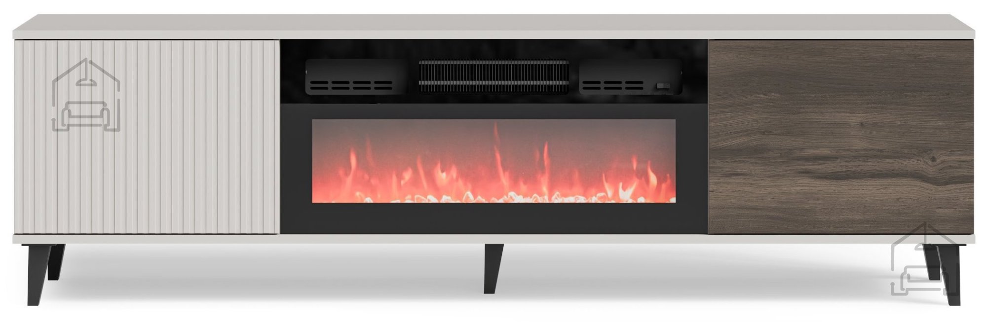 RTV komoda Random 2 s kaminom - 180 cm je več kot le kos pohištva; je investicija v udobje, stil in funkcionalnost vašega doma. Z njenim elegantnim dizajnom, visokokakovostnimi materiali in integriranim električnim kaminom, je ta komoda popolna izbira za vse, ki želijo svojemu domu dodati pridih luksuza in topline. Ne oklevajte in privoščite svojemu dnevnemu prostoru ta izjemen kos pohištva, ki bo zagotovo postal središče vašega doma.