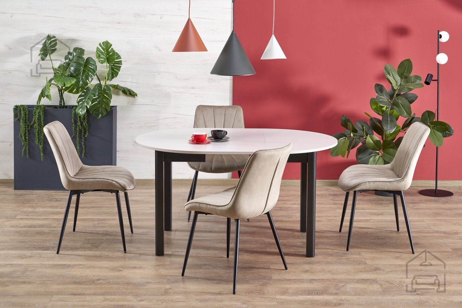 Der Ringo-Tisch zeichnet sich durch sein modernes Design aus, das durch eine elegante Kombination aus Kaschmir und schwarzer Farbe ergänzt wird. Dieses Farbschema ist äußerst anpassungsfähig und passt perfekt zu verschiedenen Einrichtungsstilen, von klassisch bis modern. Die Farben sind so gewählt, dass sie eine angenehme und warme Atmosphäre schaffen, in der Sie sich zu Hause und entspannt fühlen werden.
