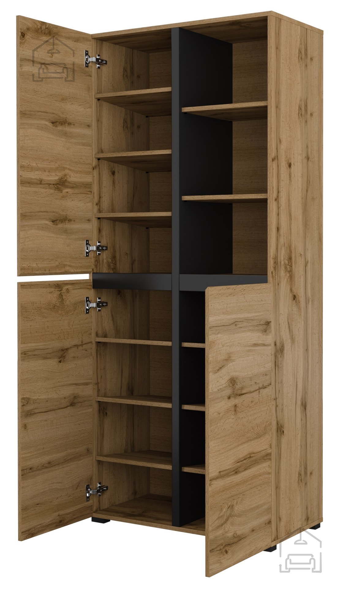 Der Schrank Cross – Votan/Votan-Schwarz – vereint Stil, Funktionalität und Qualität in einem Möbelstück. Mit seinem eleganten Design und seiner praktischen Aufteilung ist er die perfekte Wahl für alle, die Ordnung und Ästhetik in ihrem Zuhause verbessern möchten. Verpassen Sie nicht die Gelegenheit, Ihr Heim mit diesem außergewöhnlichen Möbelstück von Helvetia Meble zu bereichern – erhältlich bei Moebelundmoebel.at.