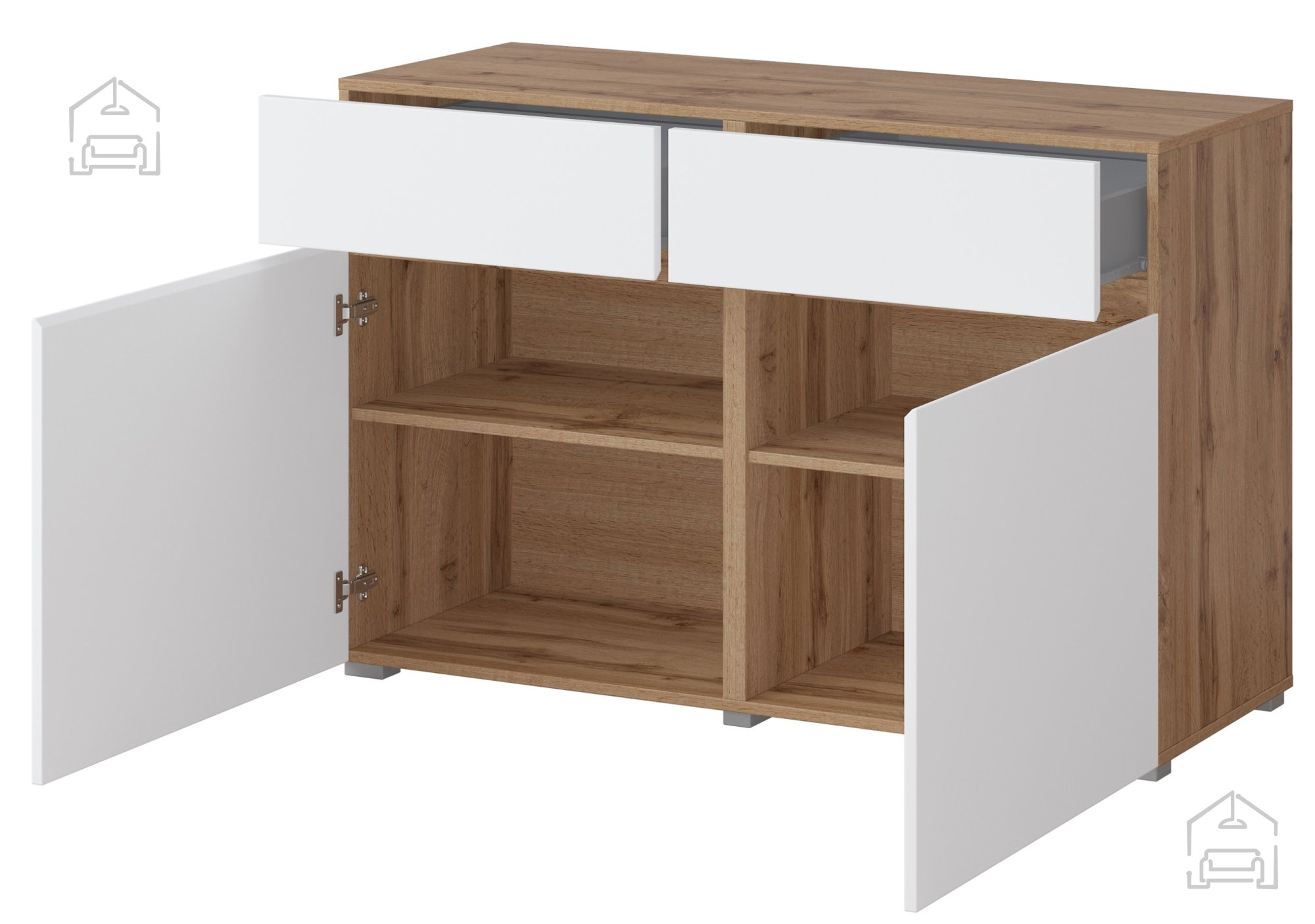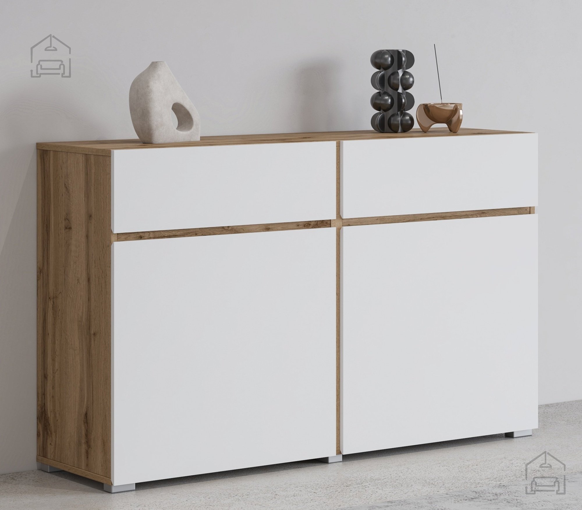 Die Kommode Cross – Eiche Votan/Weiß – 24N9MY45 ist mehr als nur ein Möbelstück – sie spiegelt Ihren Stil und Sinn für Details wider. Mit ihr bringen Sie Ordnung und Ästhetik auf harmonische Weise in Ihr Zuhause. Eine ideale Wahl für alle, die Wert auf Qualität, Design und Funktionalität legen. Nutzen Sie die Gelegenheit, Ihr Heim mit einem Stück zu bereichern, das all diese Eigenschaften vereint.
