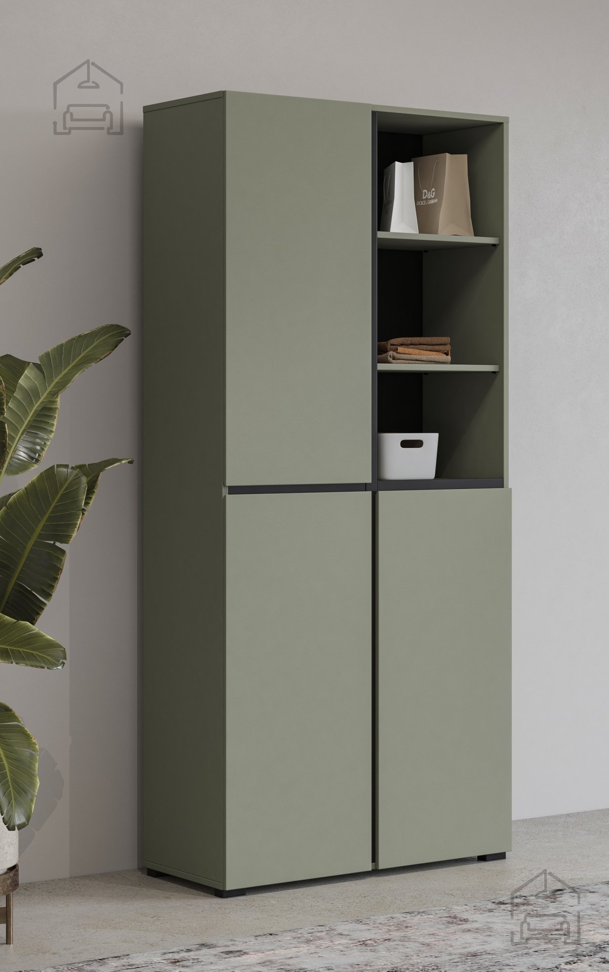 Der Kleiderschrank Cross – grün/grün-schwarz – 24GWMY88 ist mehr als nur ein Möbelstück – er bringt Ordnung, Stil und Qualität in Ihr Zuhause. Mit seinem zeitlosen Design und der sorgfältigen Verarbeitung ist er die perfekte Wahl für alle, die Wert auf Ästhetik und Funktionalität legen. Ob Sie Ihr Zuhause neu gestalten oder Ihre bestehende Einrichtung ergänzen möchten – dieser Schrank ist die ideale Lösung.
