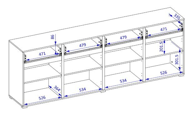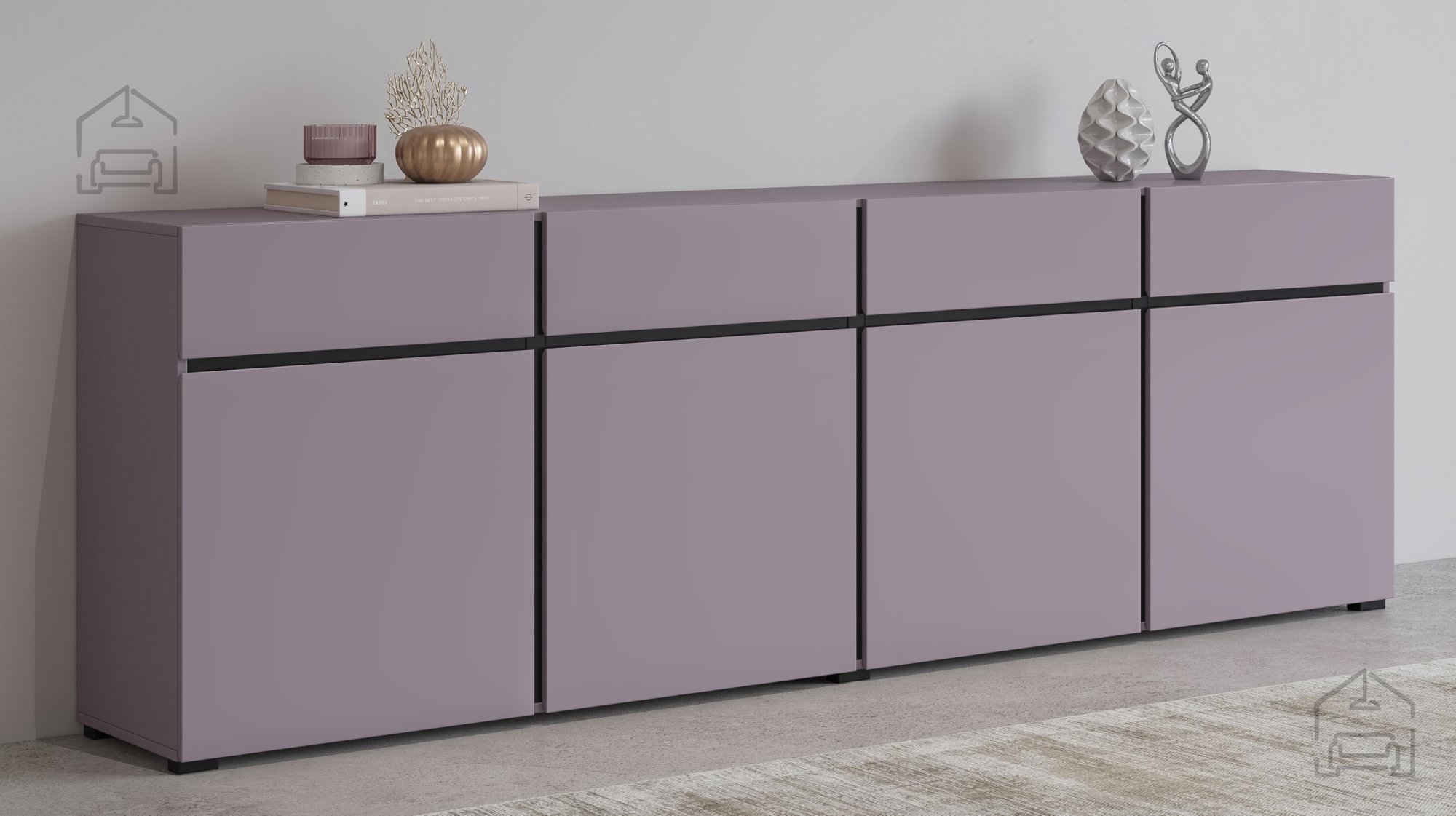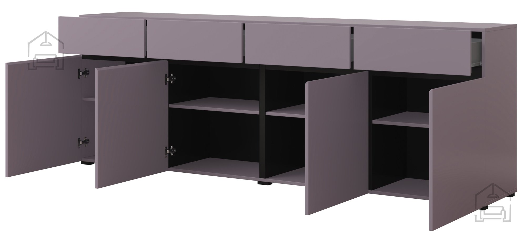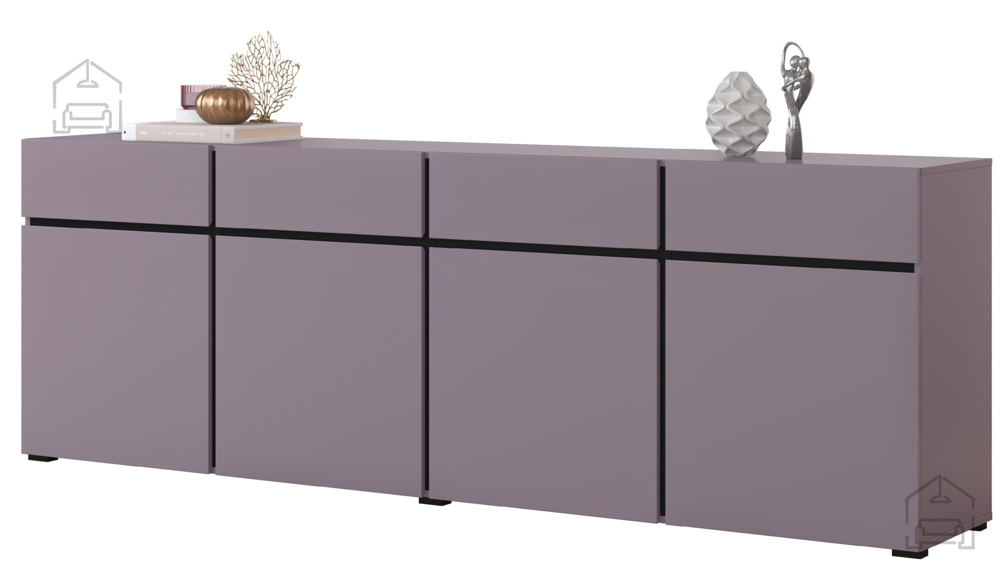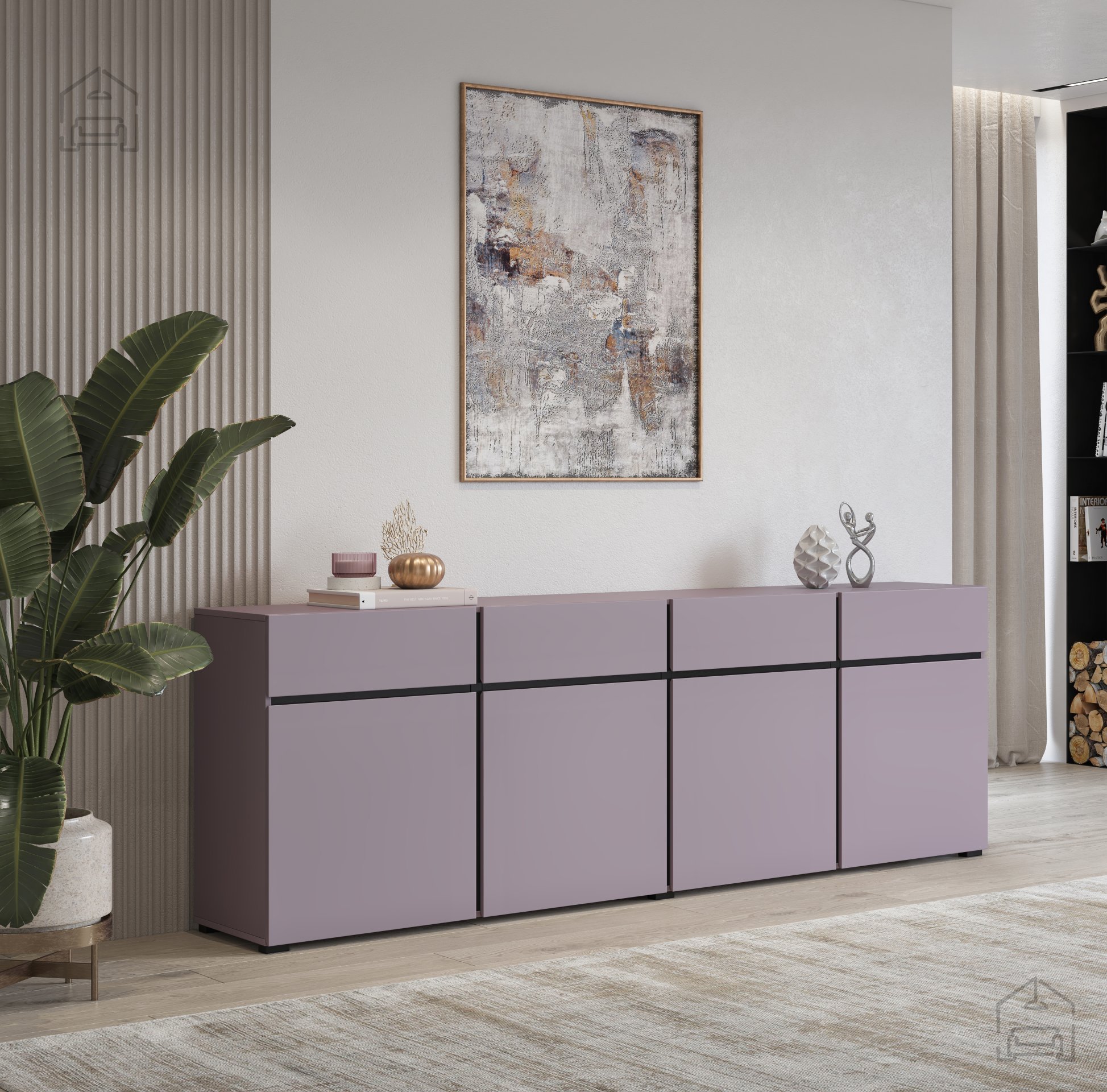 Mit den Maßen 225x40x78 cm bietet diese Kommode großzügigen Stauraum und behält dabei ihre schlanke, moderne Optik. Gefertigt aus hochwertigem MDF, garantiert sie Langlebigkeit und Widerstandsfähigkeit gegen Abnutzung – so bleibt ihr elegantes Erscheinungsbild auch nach Jahren erhalten.