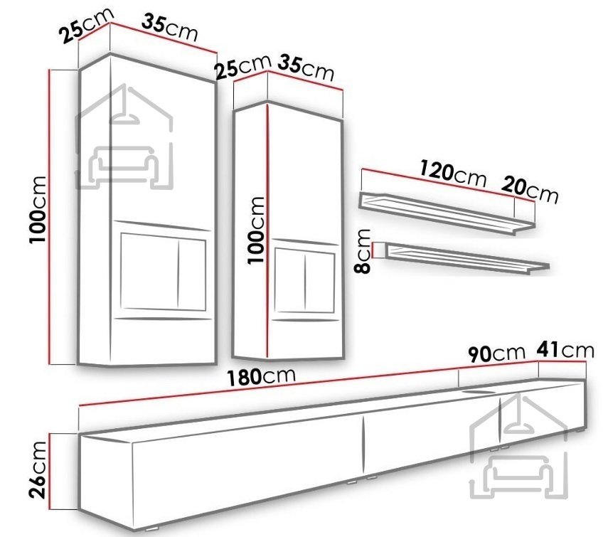 Mit den Maßen 270 x 41 cm ist die Wohnwand Baros ideal für alle, die ihren Platz optimal nutzen möchten, ohne auf Stil zu verzichten. Durch das durchdachte Design lässt sich das Möbelstück flexibel in verschiedene Bereiche Ihres Zuhauses integrieren – vom Wohnzimmer bis ins Büro – und sorgt dort für eine klare, stilvolle Atmosphäre.