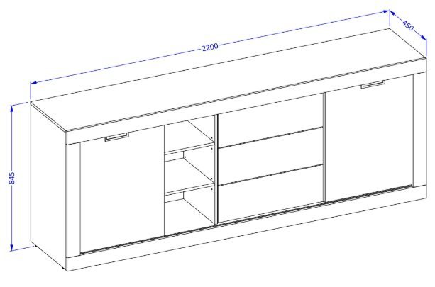 Wir präsentieren Ihnen die elegante und moderne Kommode Tudor - 24WSNZ25, entworfen für alle, die zeitlose Eleganz und höchste Funktionalität schätzen. Dieses außergewöhnliche Möbelstück ist die ideale Wahl für jedes moderne Zuhause, in dem Design und Alltagstauglichkeit harmonisch ineinandergreifen. Mit ihren Maßen von 220x45x85 cm bietet sie großzügigen Stauraum und bleibt dabei stets stilvoll und dezent im Auftritt.