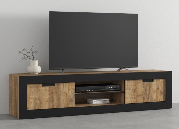 Die TV-Kommode Tudor misst 180x40x42 cm und passt dadurch perfekt in unterschiedlich große Räume – von kleineren Wohnzimmern bis hin zu großzügigen Wohnbereichen. Gefertigt aus hochwertiger, laminierter Platte, überzeugt sie durch Robustheit und eine elegante, kratz- sowie abriebfeste Oberfläche. Das Laminat vereint Langlebigkeit mit einfacher Pflege – so bleibt Ihre Kommode über viele Jahre hinweg wie neu.