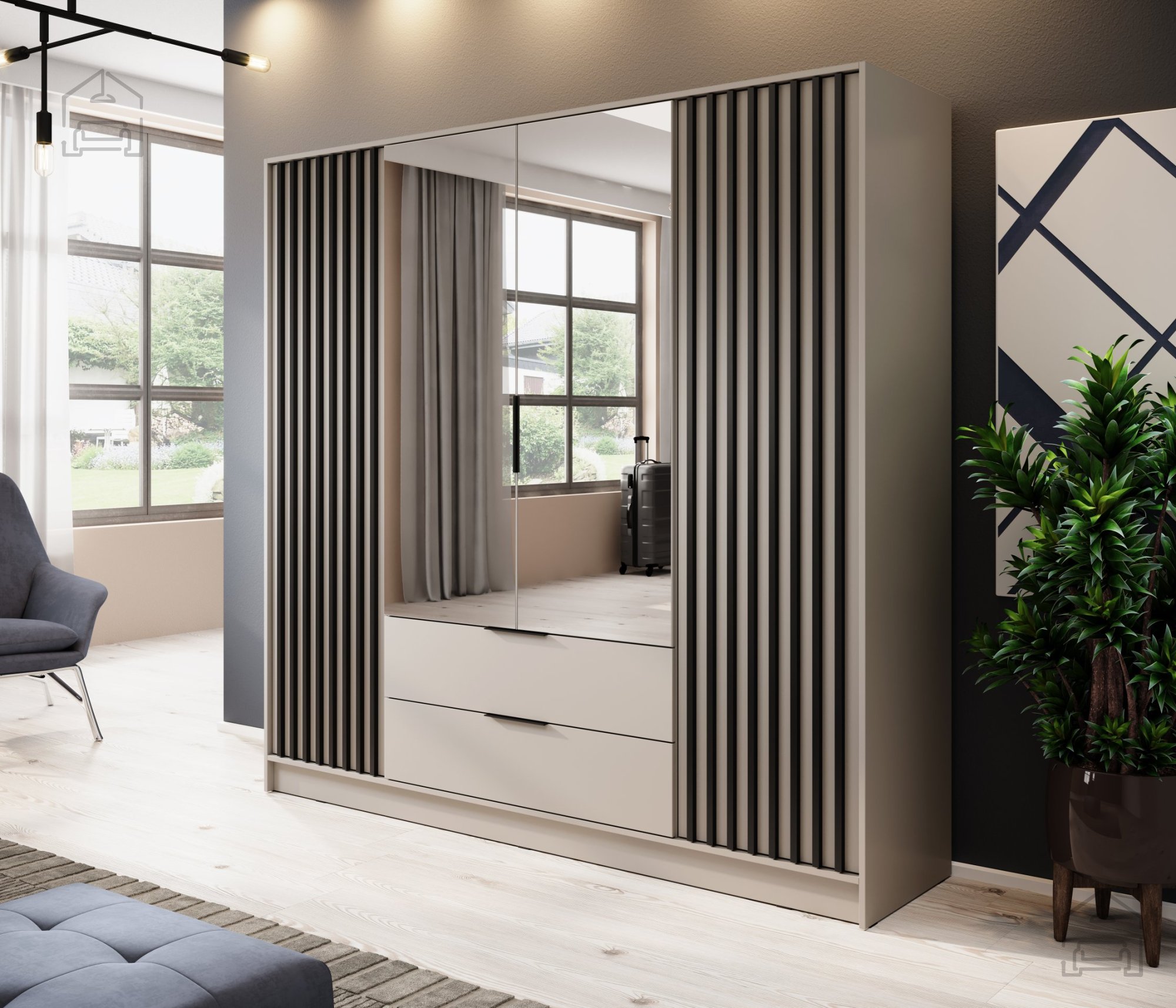 Kleiderschrank Nelly 4D mit Spiegel – Kaschmir