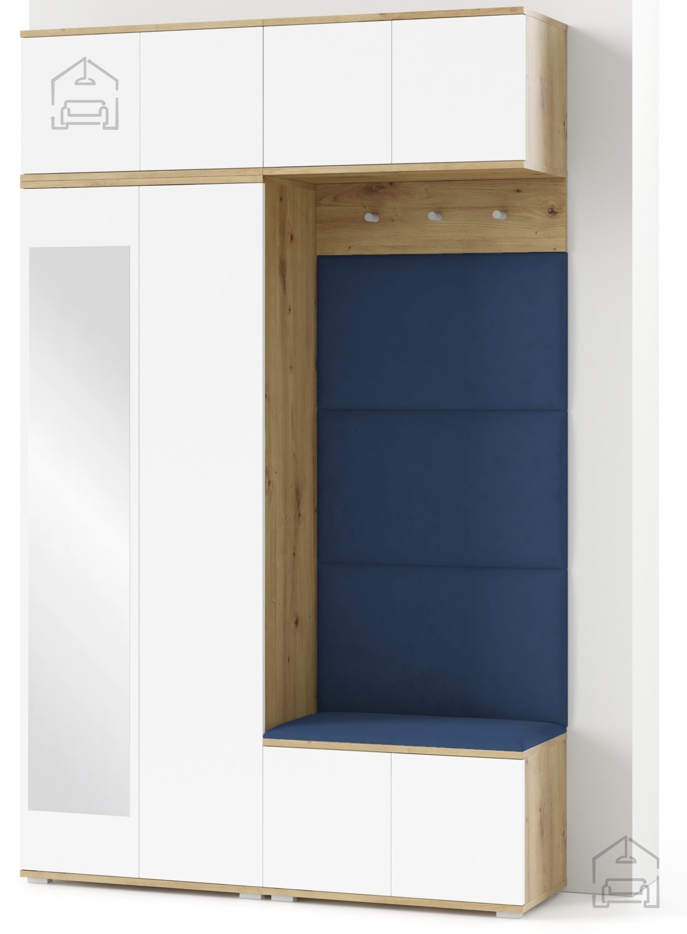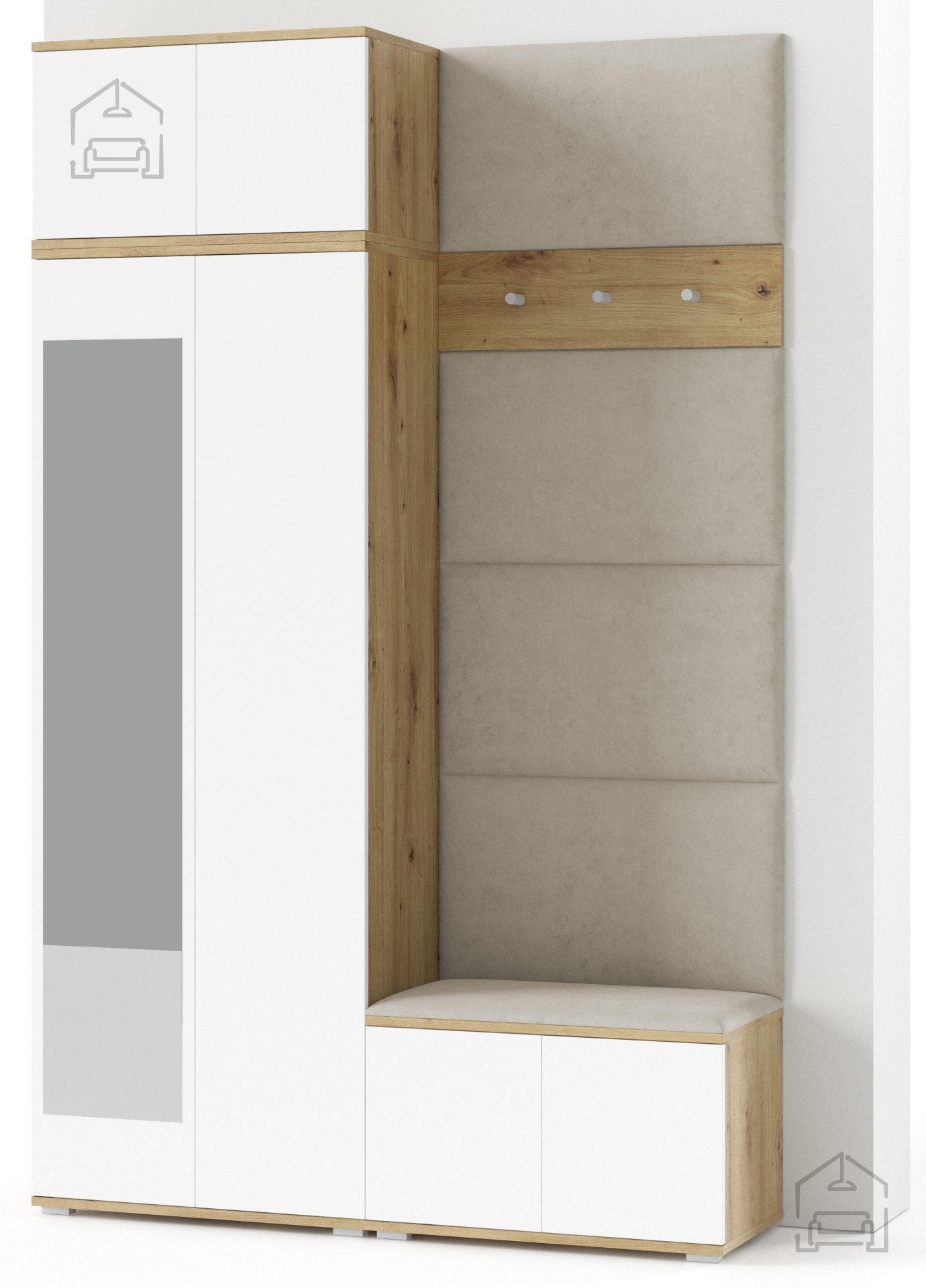 Der Schrank Sevilla 2 zeichnet sich durch eine elegante Farbkombination aus, die sich an verschiedene Einrichtungsstile anpasst. Die Farbe des Korpus ist Eiche Artisan, die Wärme und natürliche Holzschönheit bringt, während die Farbe der Front weiß ist, was Frische und Reinheit schafft. Diese harmonische Farbmischung ermöglicht eine einfache Kombination mit vorhandenen Möbeln und Dekorationen und schafft so ein optisch ansprechendes und ausgewogenes Ambiente.