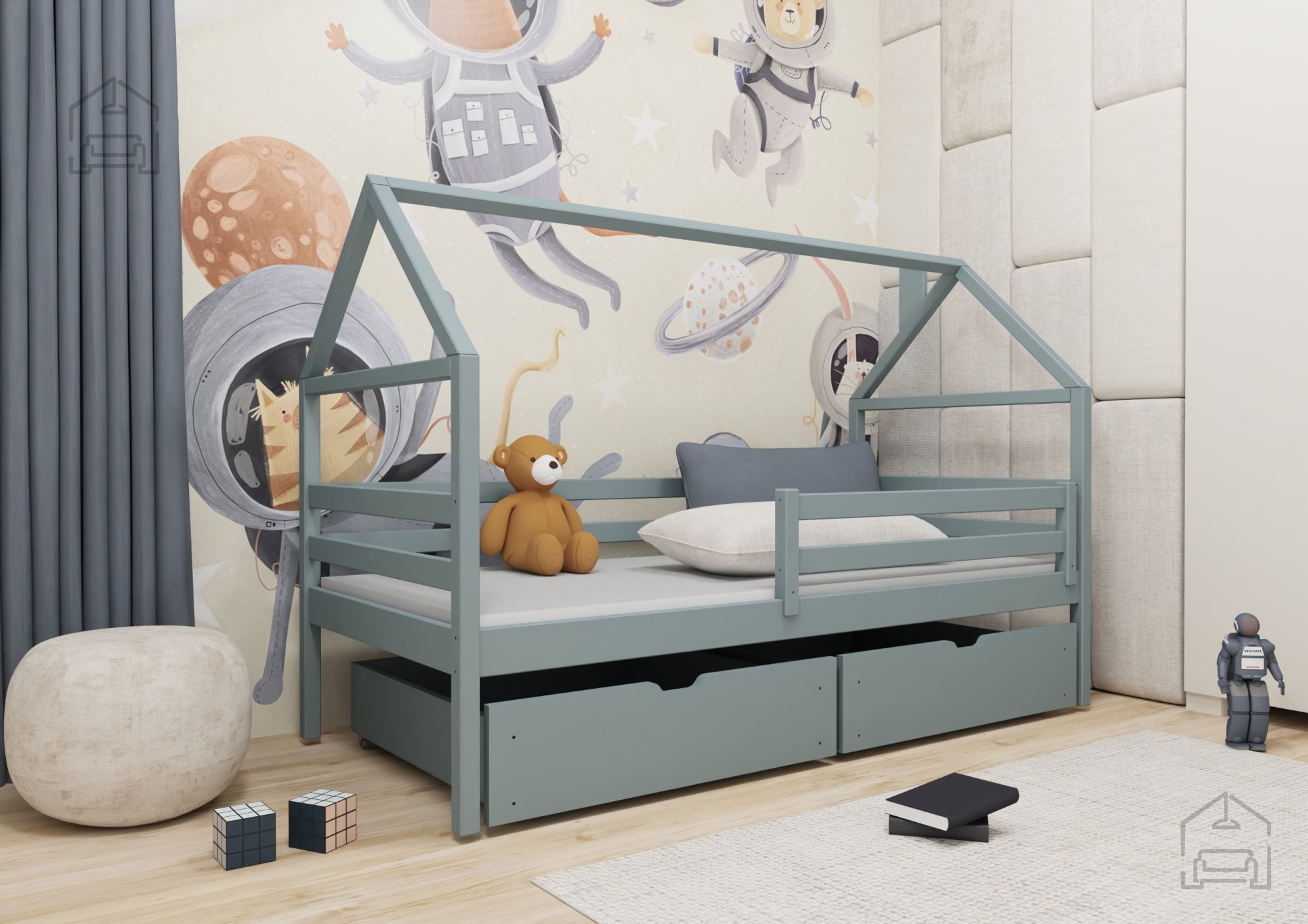 Otroška postelja hiška Aron ni le kos pohištva, temveč investicija v udobje, varnost in srečo vašega otroka. Njena funkcionalnost in estetska privlačnost zagotavljata, da bo postelja postala središče otroške sobe, kjer se bodo odvijale številne zgodbe in sanje.