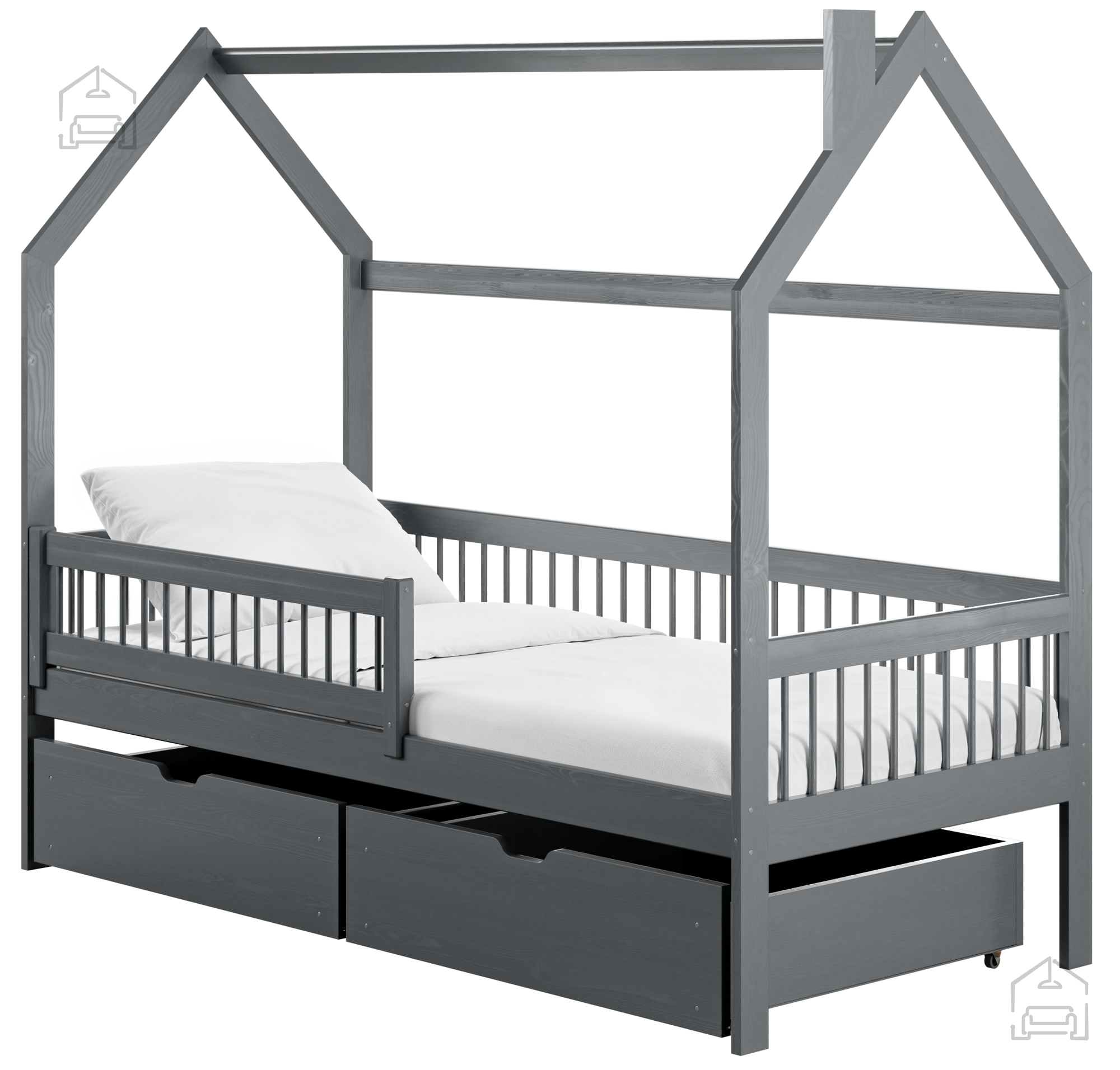 Einer der Hauptvorteile dieses Bettes ist seine Praktikabilität. Es enthält zwei geräumige Schubladen, die eine einfache Aufbewahrung von Spielzeug, Kleidung oder Bettwäsche ermöglichen. So bleibt das Zimmer immer ordentlich. Außerdem verfügt das Bett über eine abnehmbare Schutzwand, die zusätzliche Sicherheit für kleine Kinder bietet. Sie können beruhigt schlafen, da Ihr Kind sicher in seinem Bett schläft.