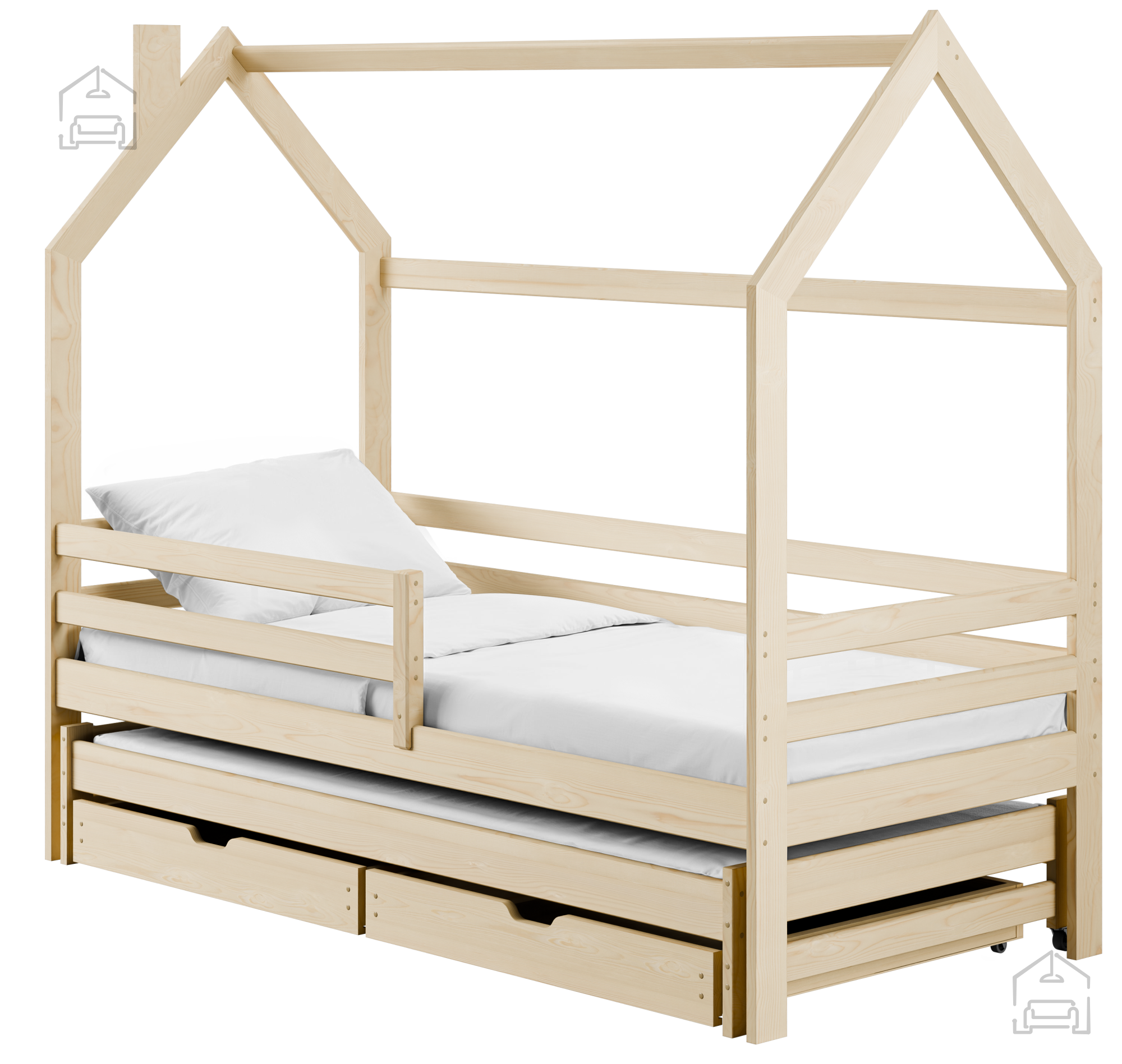 Izdelana iz visokokakovostnega borovega lesa, ta postelja prinaša trdnost in trajnost. Dimenzije 86x164x166.5 cm omogočajo, da se popolnoma prilega v katerokoli sobo, medtem ko ležalna površina 80x160 cm zagotavlja dovolj prostora za udoben spanec. Naravna barva bora se lepo ujema z vsako otroško tematiko in dekorjem, kar omogoča enostavno vključitev v obstoječi prostor.
