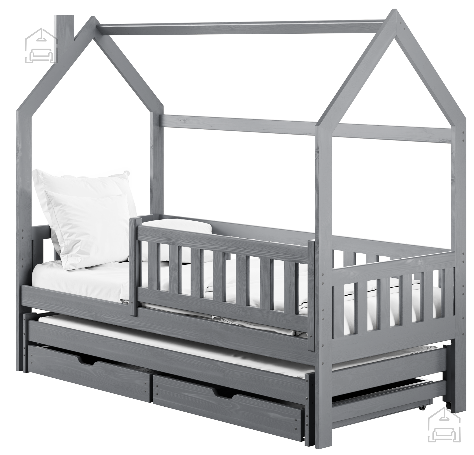 Das Kinderbett mit zusätzlichem Bett Monkey ist nicht nur funktional, sondern auch ästhetisch ansprechend. Seine graue Farbe ermöglicht eine einfache Kombination mit verschiedenen Dekorationsstilen, von klassisch bis modern. Außerdem wird es in der Fabrik Lano in Polen hergestellt, was eine hohe Verarbeitungsqualität und Aufmerksamkeit für Details garantiert.
