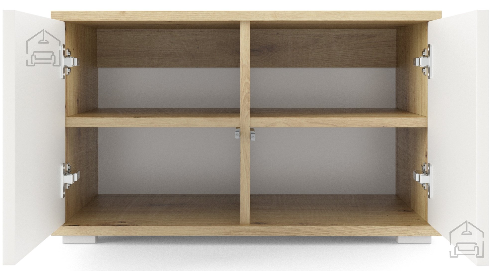 - Elegante Ästhetik: Die Kombination aus Eiche Artisan und modernen weißen Fronten schafft ein zeitloses Erscheinungsbild, das zu verschiedenen Einrichtungsstilen passt.