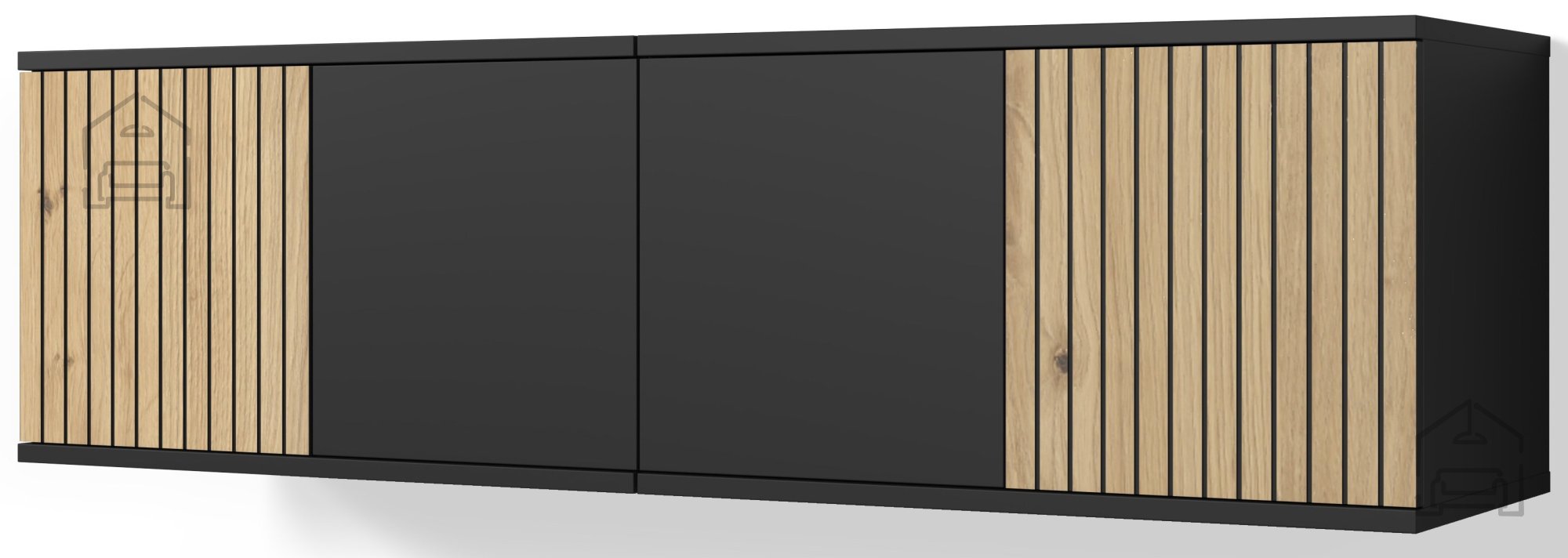 Wir präsentieren Ihnen die Wand-TV-Kommode Ross 140 cm, die modernes Design und Praktikabilität vereint und somit zum Mittelpunkt Ihres Wohnzimmers wird. Mit ihrer eleganten Kombination aus schwarzer Farbe und Artisan-Eiche wird sie alle Liebhaber moderner Innenarchitektur begeistern. Hergestellt aus einer hochwertigen laminierten Platte mit einer Stärke von 16 mm, garantiert diese Kommode Haltbarkeit und eine lange Lebensdauer.
