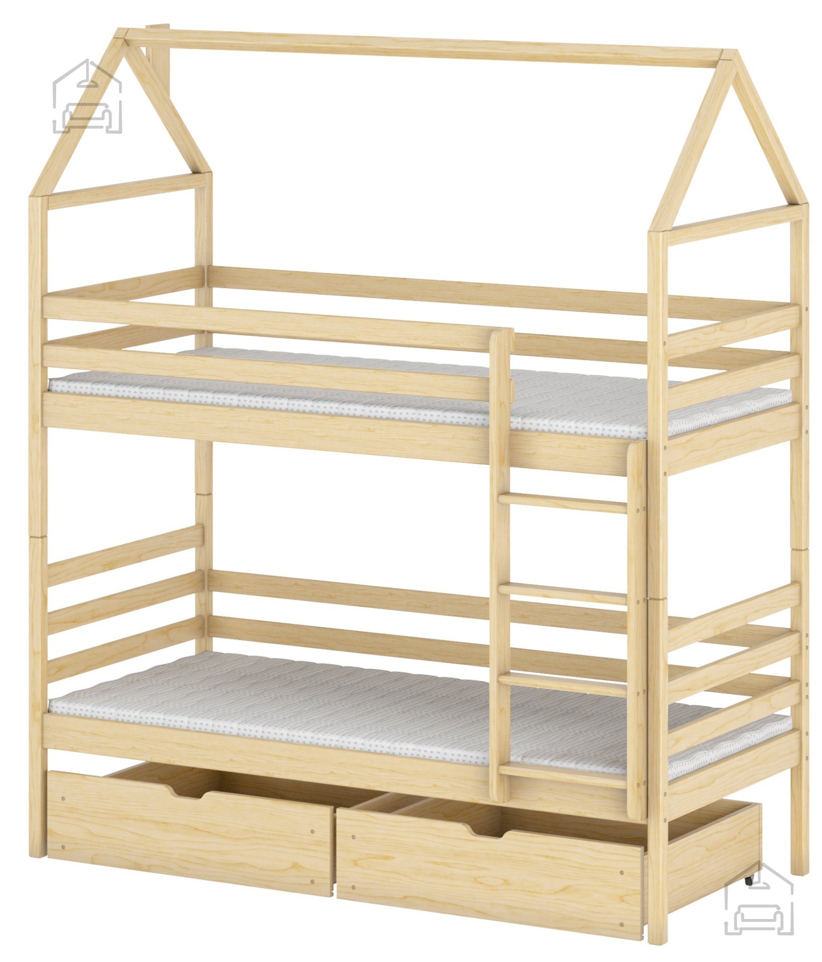 Das Etagenbett Alex ist eine ausgezeichnete Ergänzung für jedes Kinderzimmer oder Gästezimmer, wo der Platz begrenzt ist, aber Stil und Funktionalität dennoch eine Schlüsselrolle spielen. Hergestellt aus langlebigem und ästhetisch ansprechendem Kiefernholz, vereint dieses Etagenbett Funktionalität mit elegantem Design, was es ideal für moderne Wohnungen macht.