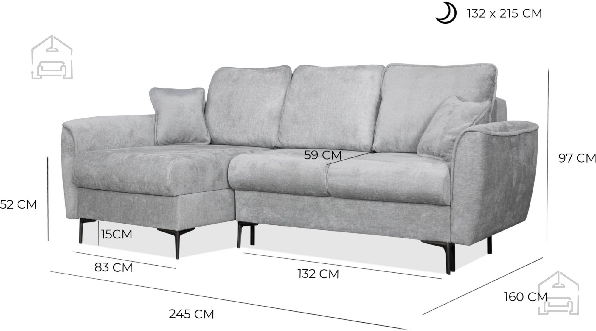 Zahvaljujoč mehanizmu Euro in dodatnemu ležišču je ta garnitura idealna za manjše prostore, kjer je potrebna večnamenska uporaba.