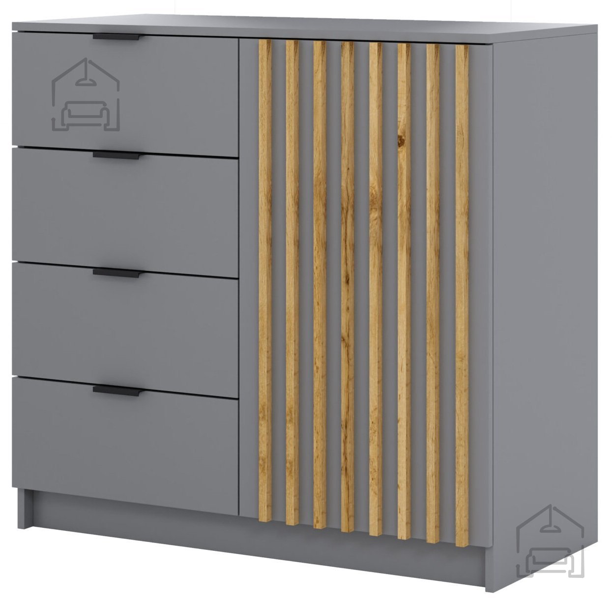 Die Kommode Colorado in stilvollem Grau mit Elementen aus Wotan-Eiche ist die ideale Wahl für alle, die modernes Design mit natürlicher Ausstrahlung verbinden möchten. Mit ihren Maßen von 94x45x100 cm passt sie mühelos in unterschiedliche Räume – vom Wohnzimmer bis zum Schlafzimmer – und bietet zugleich jede Menge Stauraum.
