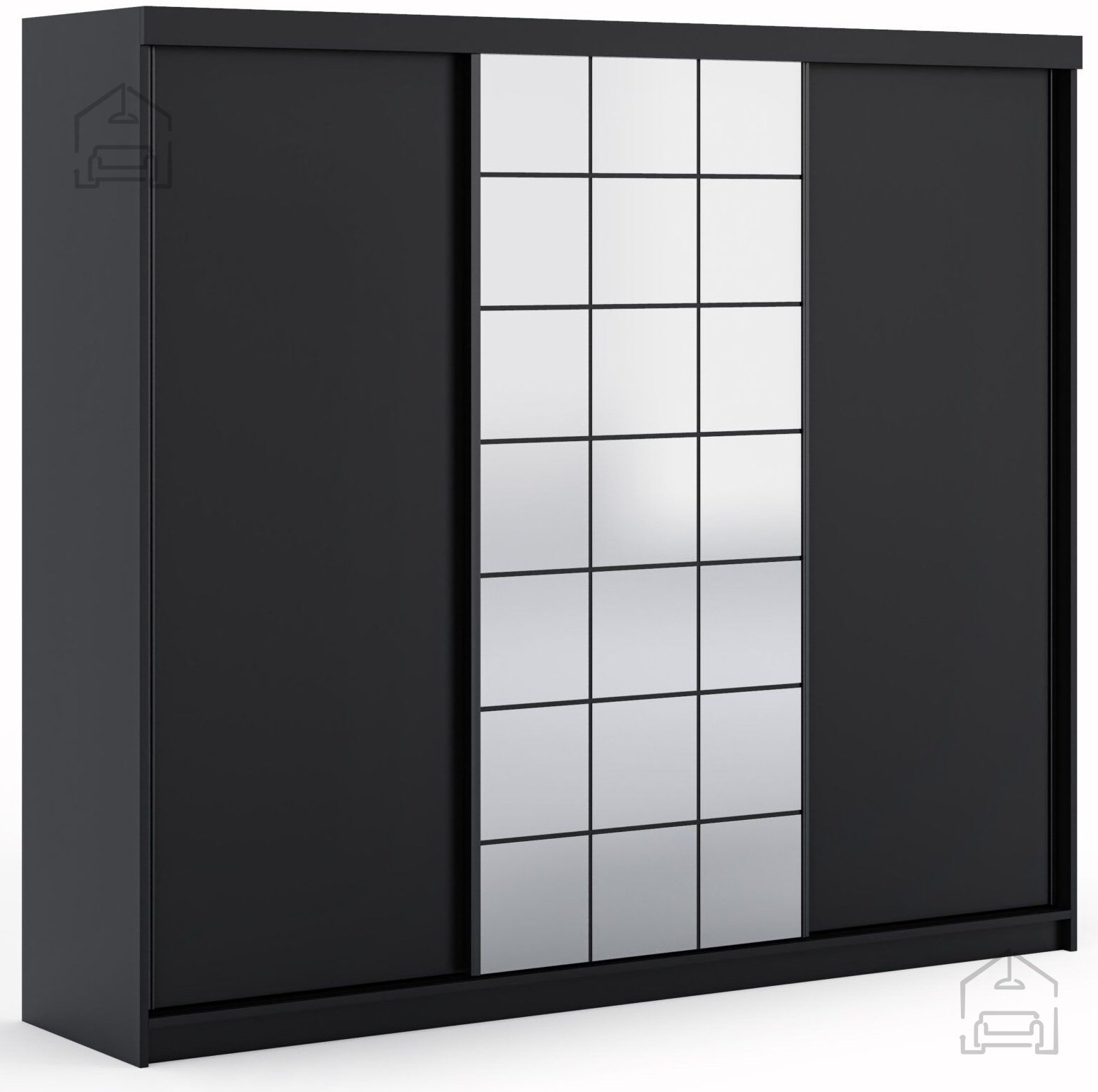 Wenn es um Funktionalität und Stil geht, ist der Kleiderschrank Collin 250 cm in Schwarz eine unverzichtbare Wahl für jedes zeitgemäße Zuhause. Dieser elegante Schrank aus hochwertigem Spanplattenmaterial mit integriertem Spiegel verleiht Ihrem Schlafzimmer oder Vorraum einen Hauch von Eleganz und praktischer Raffinesse.