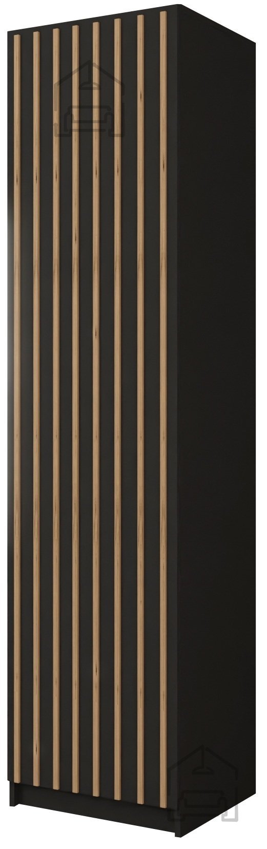 Entdecken Sie die perfekte Verbindung aus Stil und Funktionalität, die der Kleiderschrank Jaxon bietet. Dieses wunderschöne Möbelstück setzt neue Maßstäbe für modernes Wohnen, indem es elegantes Design mit praktischer Alltagstauglichkeit kombiniert. Gefertigt aus hochwertiger Spanplatte, überzeugt der Schrank durch Langlebigkeit und Widerstandsfähigkeit gegenüber täglicher Beanspruchung. In edlem Schwarz mit eleganten Elementen in Wotan-Eiche ist er die ideale Wahl für jedes Zuhause.