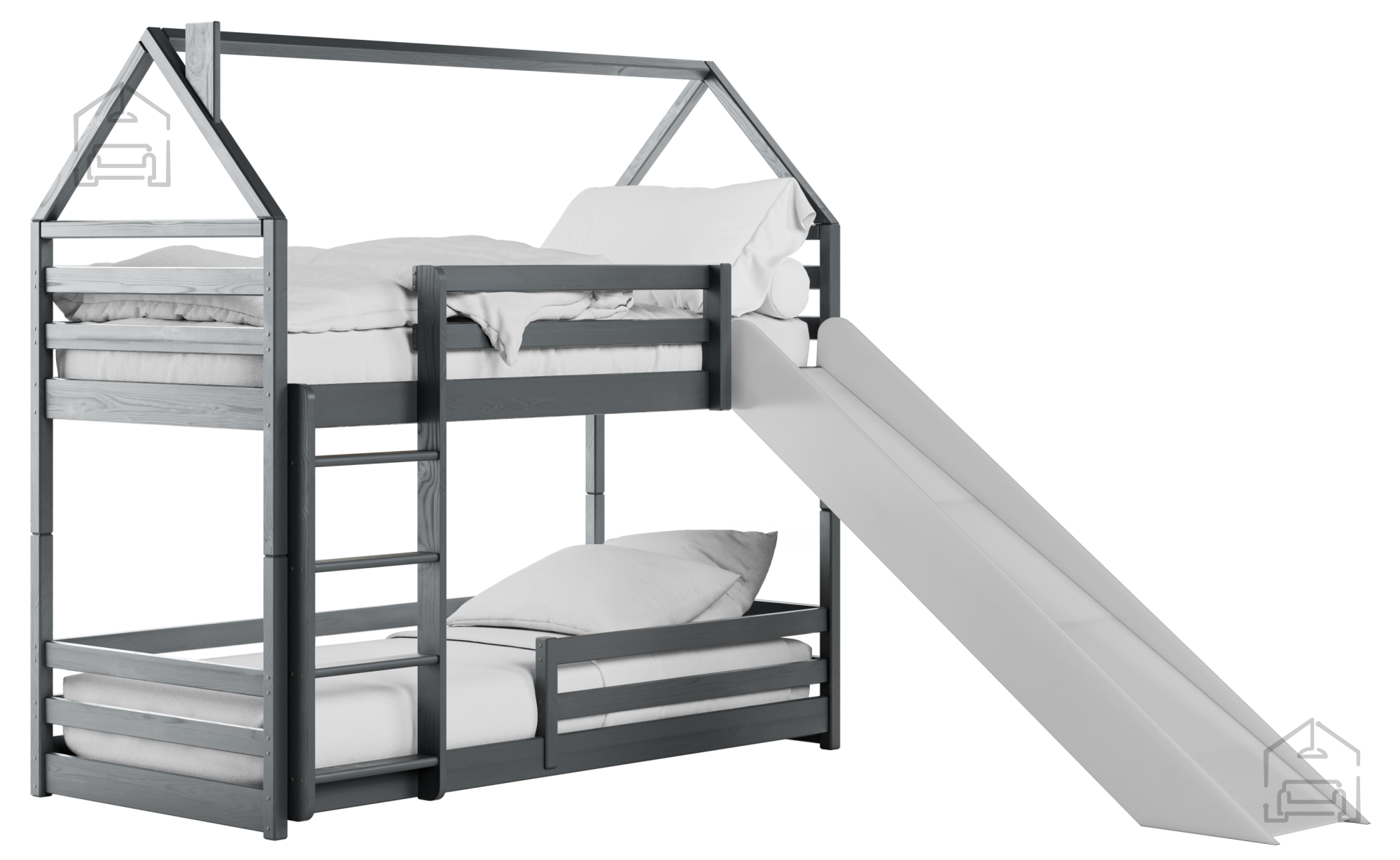 Suchen Sie nach einer innovativen Lösung für das Kinderzimmer? Das Etagenbett mit Rutsche Play ist die perfekte Kombination aus Spaß und Praktikabilität, die sowohl Kinder als auch Eltern begeistern wird. Dieses einzigartige Bett ist nicht nur ein Ort zum Schlafen, sondern auch ein Raum für Spiel und Fantasie. Mit seiner modernen graphitfarbenen Ausführung und der hochwertigen Verarbeitung aus Kiefernholz passt es hervorragend in jedes Interieur.