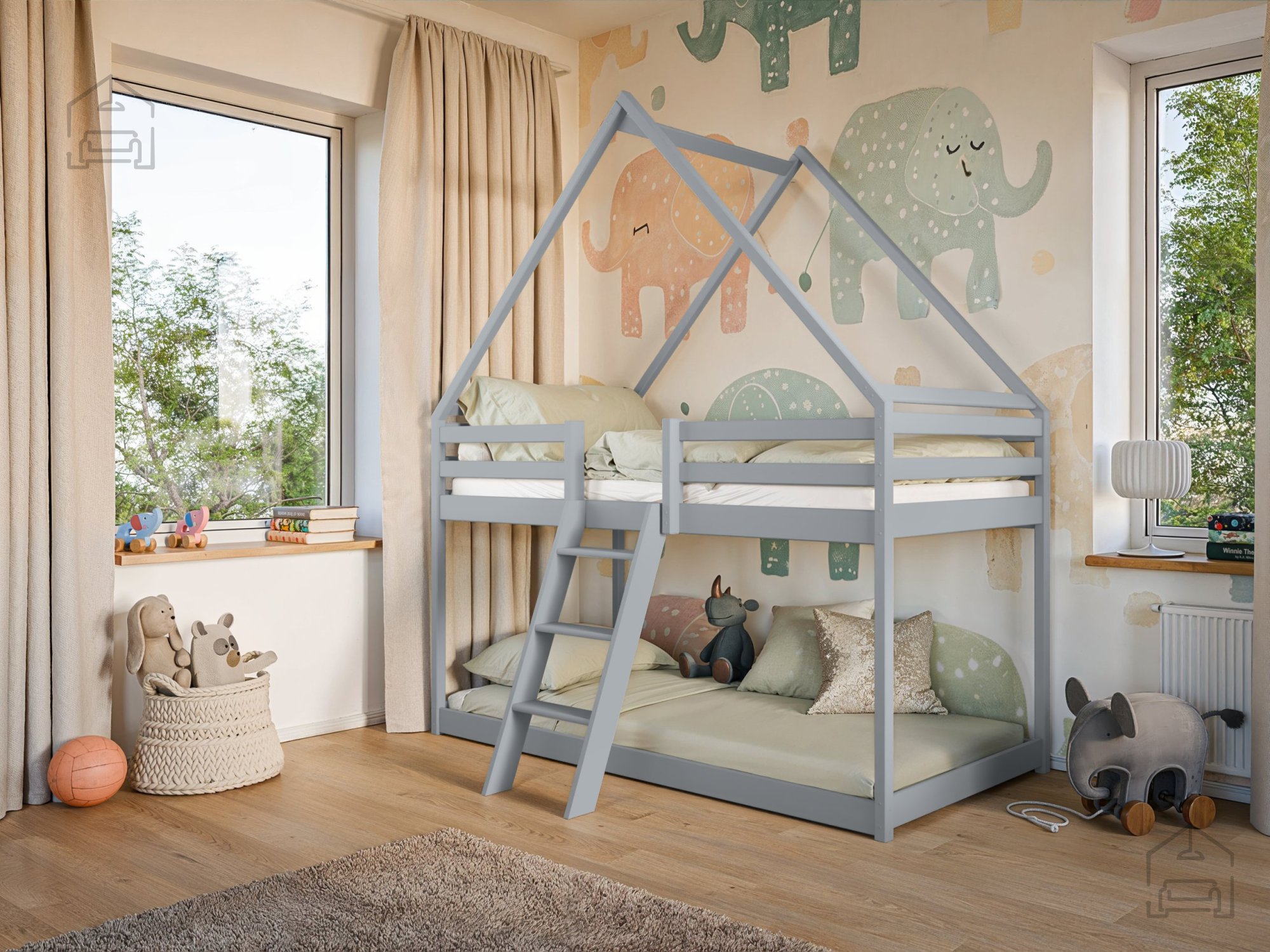Das Etagenbett Sweet ist aus erstklassigem Kiefernholz gefertigt, was nicht nur ästhetische Anziehungskraft, sondern auch eine lange Lebensdauer gewährleistet. Die Holzkonstruktion ist für ihre Festigkeit bekannt, was bedeutet, dass dieses Etagenbett den täglichen Aktivitäten von Kindern standhält. Die graue Farbe passt problemlos zu verschiedenen Einrichtungsstilen, was eine einfache Integration in jedes Kinderzimmer ermöglicht.
