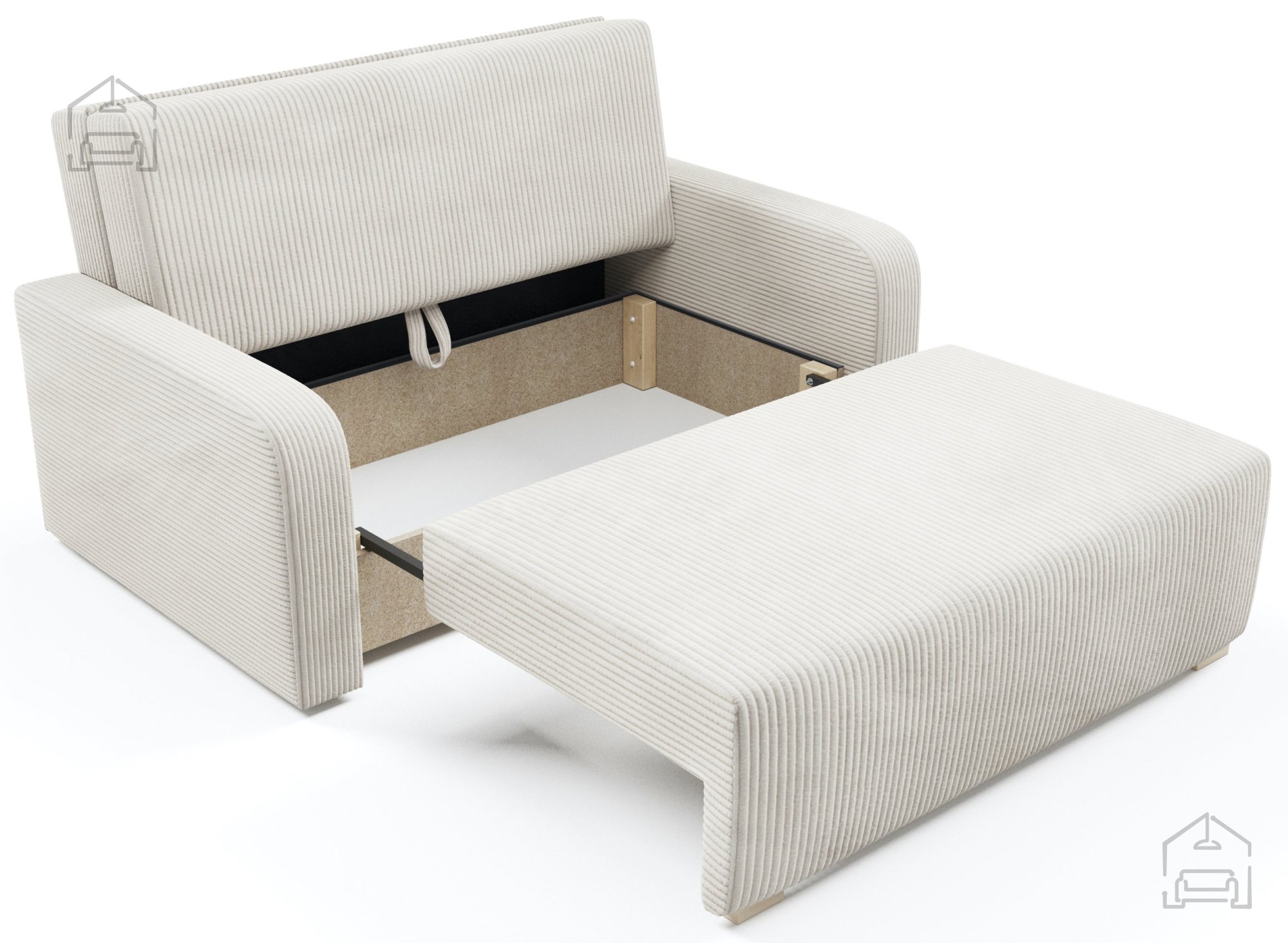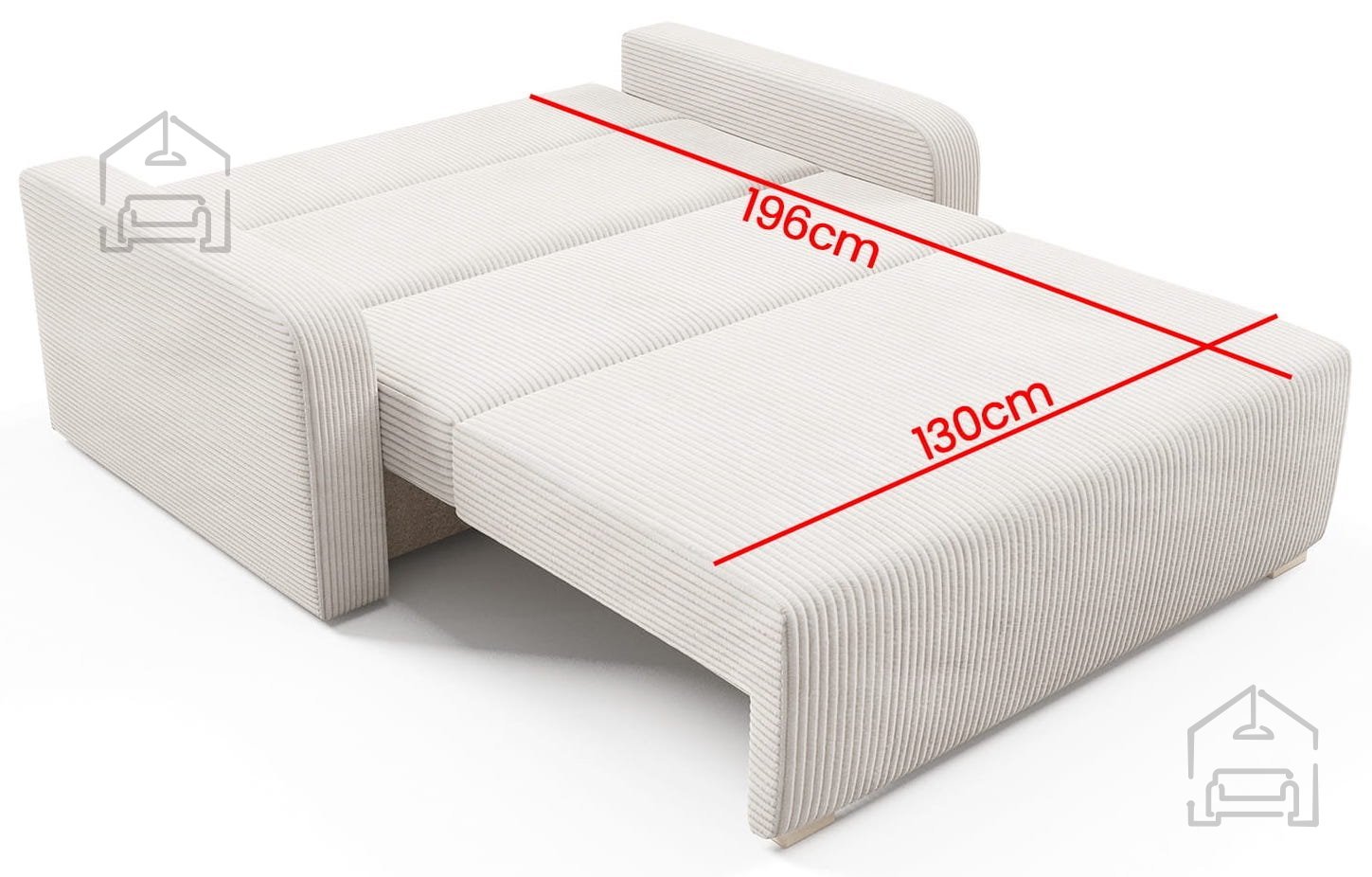 Der Dreisitzer Ness III verfügt über einen fortschrittlichen Euro-Mechanismus, der eine einfache und schnelle Umwandlung von einem bequemen Sofa in ein geräumiges Bett mit den Maßen 196x130 cm ermöglicht. Diese Funktionalität ist entscheidend für diejenigen, die jeden Winkel ihres Zuhauses optimal nutzen möchten. Darüber hinaus enthält er eine praktische Bettwäsche-Schublade, die das Verstauen zusätzlicher Decken und Laken erleichtert.