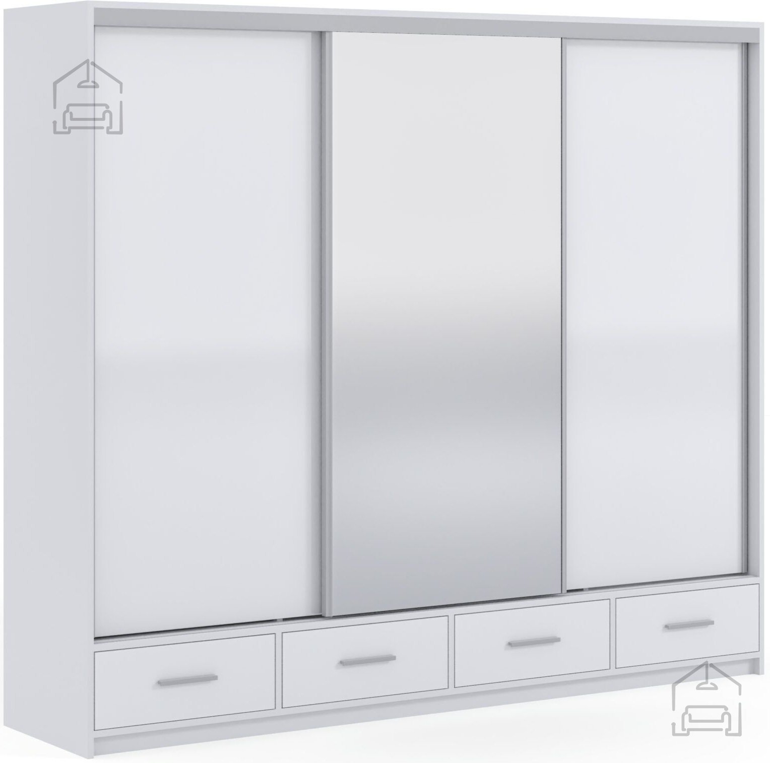 Wir präsentieren Ihnen den Kleiderschrank Lopez, der mit seinem zeitlosen Weiß und dem edlen Design Frische und Ordnung in jedes Schlafzimmer bringt. Mit den Maßen 250x62x245 cm und durchdachten Details ist dieser Schrank die ideale Wahl für alle, die praktische Aufbewahrungslösungen suchen, ohne auf Stil zu verzichten.