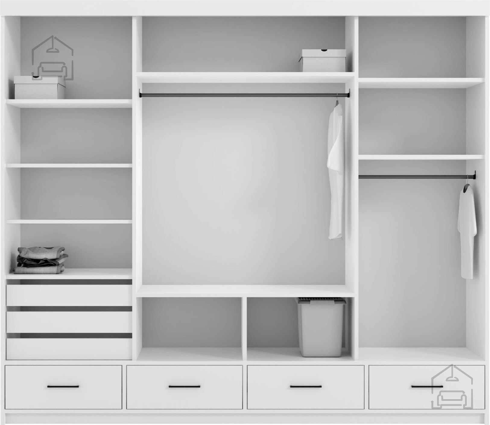 Mit einer Breite von 250 cm bietet der Kleiderschrank Lopez reichlich Platz für Ihre gesamte Garderobe. Das Innere ist clever aufgeteilt – mit mehreren Ablagefächern und Kleiderstangen für eine perfekte Organisation von Kleidung, Schuhen und Accessoires.