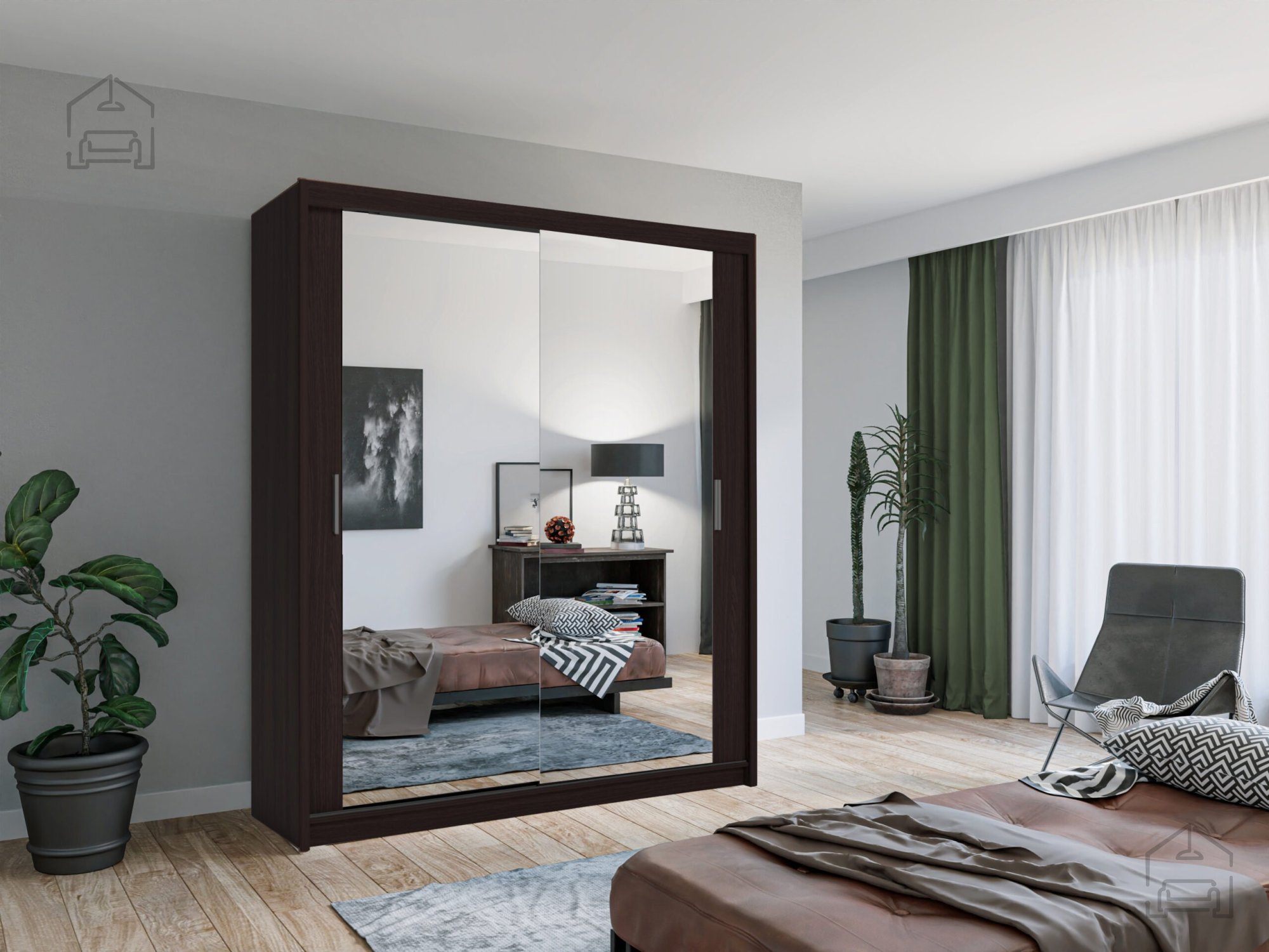 Der Kleiderschrank Lux 180 cm in edler Wenge-Farbe ist die perfekte Wahl für alle, die Funktionalität und modernes Design miteinander verbinden möchten. Gefertigt aus hochwertiger Spanplatte und mit einem Spiegel ausgestattet, verleiht dieser Schrank Ihrem Schlafzimmer oder Vorraum nicht nur einen Hauch von Stil und Raffinesse, sondern nutzt den vorhandenen Platz optimal, um Ihre Kleidung und Accessoires ordentlich zu organisieren.