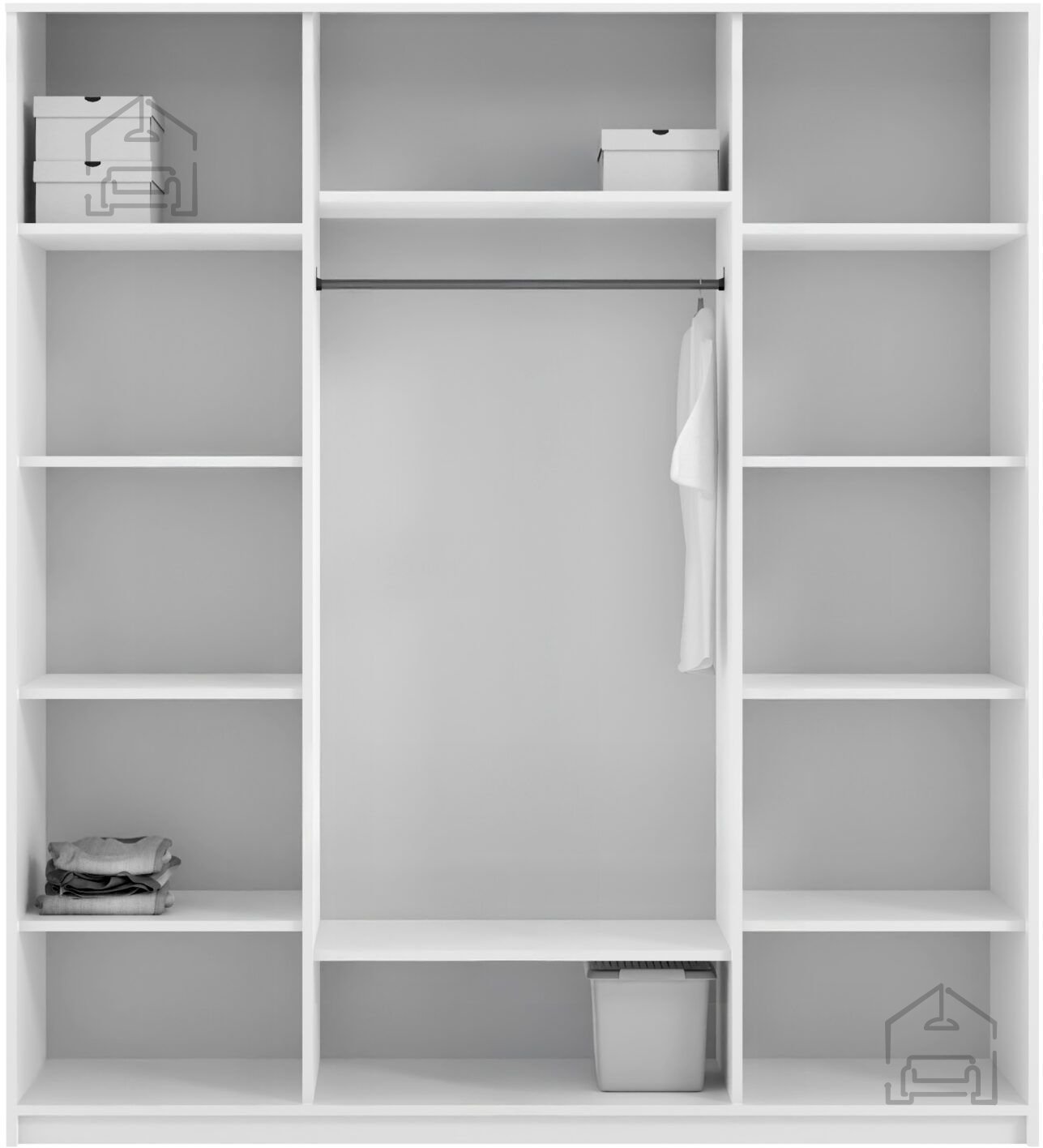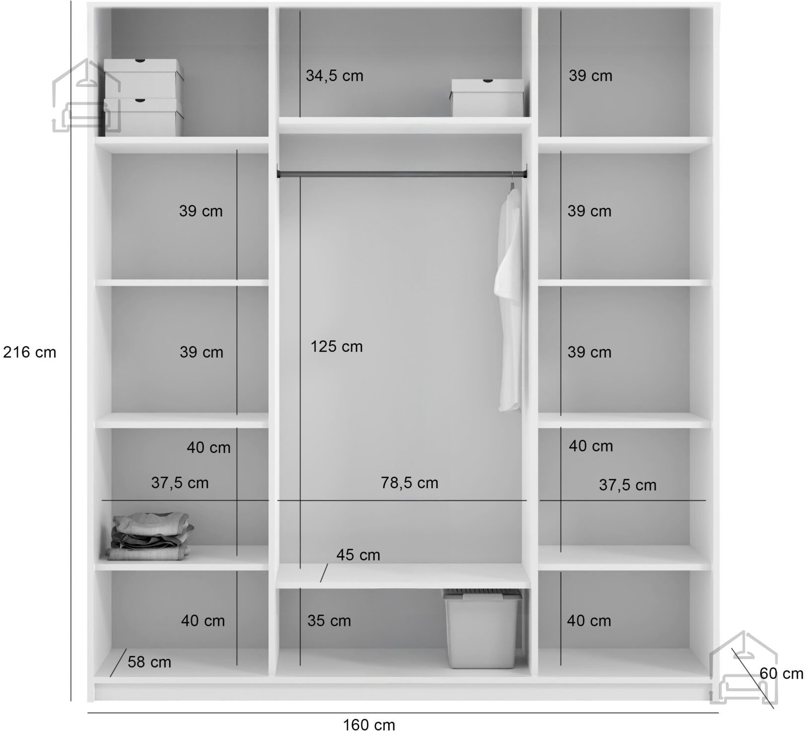 Optimal genutzter Stauraum: Dank der durchdachten Innenaufteilung mit Ablagefächern und Kleiderstangen lassen sich Kleidung, Schuhe und Accessoires übersichtlich verstauen. Der integrierte Spiegel sorgt für zusätzlichen Komfort und lässt den Raum größer wirken.