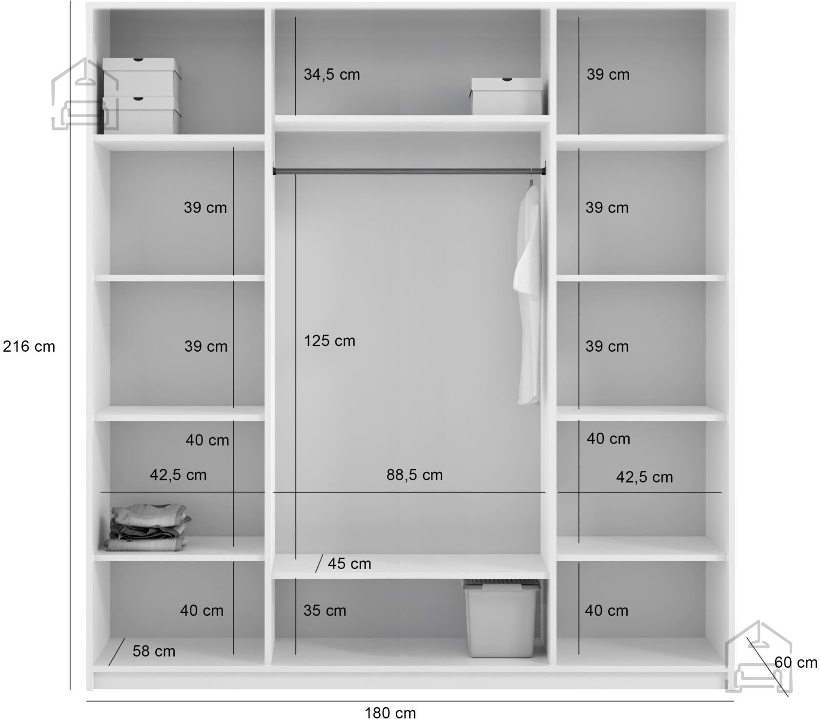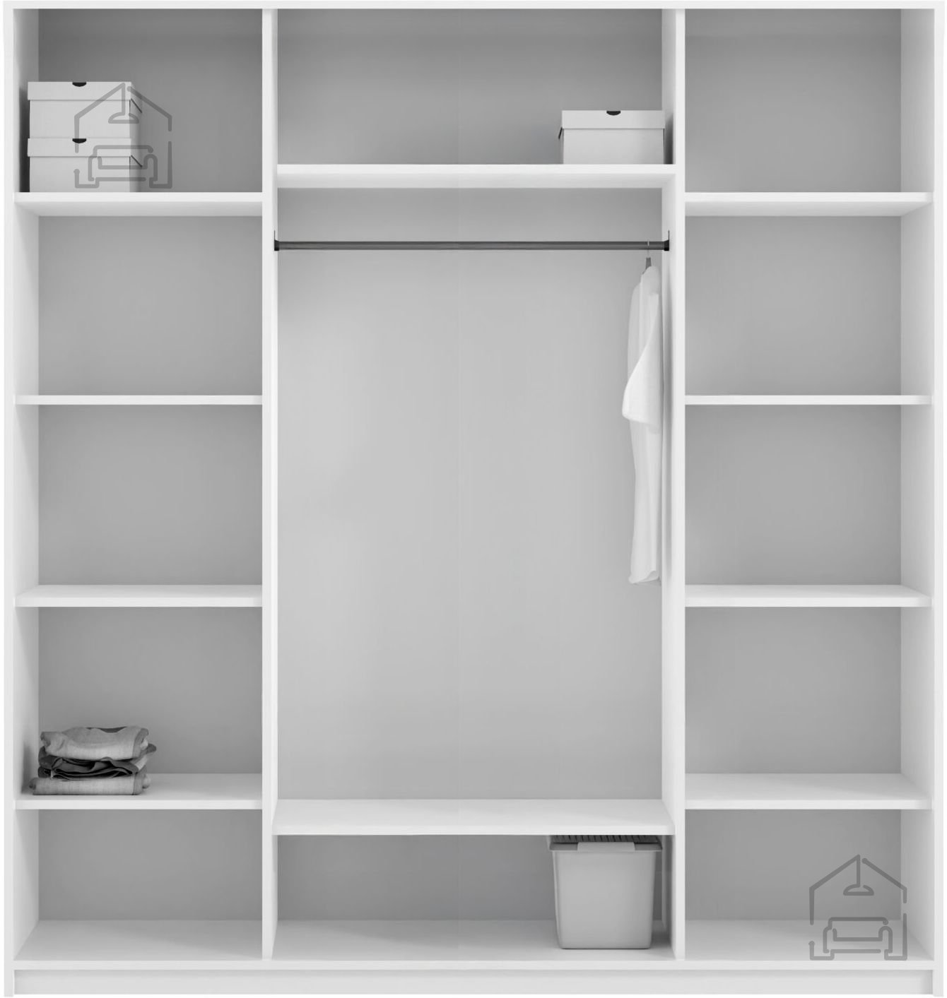 Durchdachter Stauraum: Dank der Innenaufteilung mit Regalfächern und Kleiderstangen lässt sich Ihre Kleidung, Ihr Schuhwerk und Ihre Accessoires übersichtlich ordnen. Der integrierte Spiegel sorgt nicht nur für zusätzlichen Komfort, sondern lässt den Raum auch größer wirken.