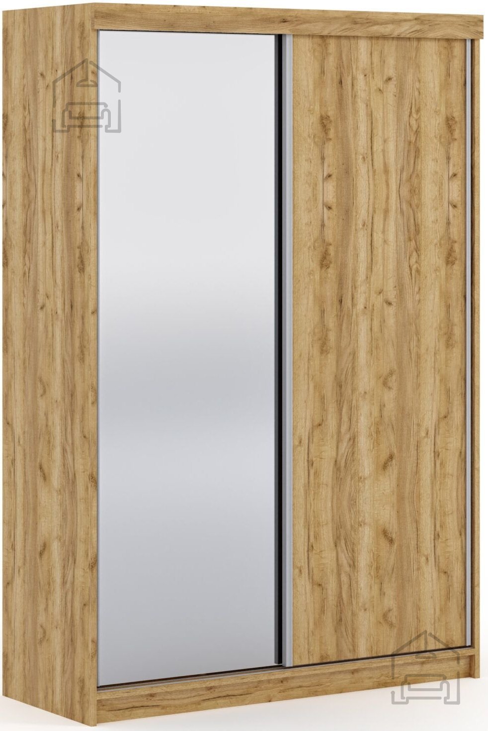 Der Kleiderschrank Pola mit den Maßen 150x62x200 cm bietet reichlich Platz für Kleidung und Accessoires. In der Mitte befindet sich ein großes Spiegelpaneel, das den Raum optisch vergrößert und Ihnen ermöglicht, sich vor dem Weggehen schnell zu richten. Dank der gut geplanten Innenaufteilung lässt sich alles übersichtlich und bequem verstauen.