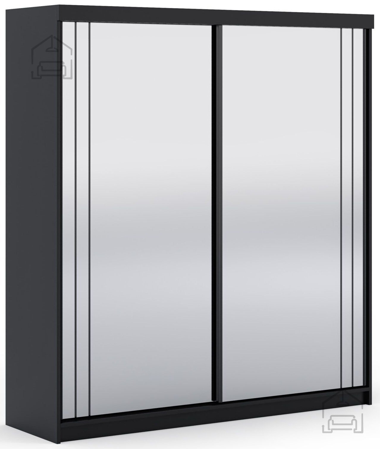 Der Kleiderschrank Smart 200 cm in elegantem Schwarz ist die ideale Wahl für alle, die Stil, Praktikabilität und großzügigen Stauraum verbinden möchten. Dieses moderne Möbelstück aus hochwertiger Spanplatte verleiht jedem Raum eine edle Note und bietet gleichzeitig viel Platz zum Verstauen. Mit seiner schwarzen Oberfläche und den Spiegeltüren wird er schnell zum Blickfang in Ihrem Schlafzimmer oder Ankleidezimmer.