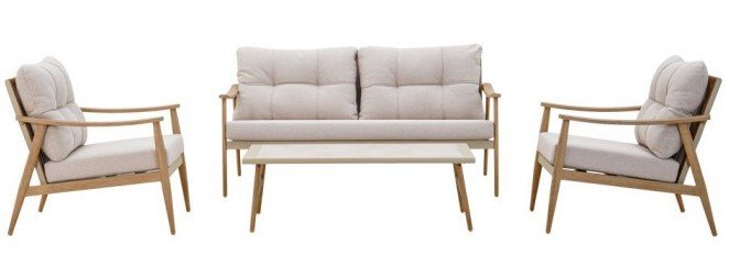 Dieses elegante Gartenset vereint modernes Design, hohe Funktionalität und ausgezeichnete Witterungsbeständigkeit – die ideale Wahl für Garten, Terrasse oder Balkon. Das Set Napa – Mirpol besteht aus leichtem, aber äußerst robustem Aluminium mit einer hochwertigen Pulverbeschichtung, die die Oberfläche effektiv vor Korrosion, Rost und UV-Strahlen schützt. Dadurch behält das Set auch nach mehreren Saisonen im Freien seine Form und sein ursprüngliches Aussehen. Der natürliche Farbton des Rahmens in Kombination mit den beigen Polstern sorgt für ein harmonisches, einladendes Gesamtbild, das sich mühelos in verschiedene Stilrichtungen – von modern bis klassisch – einfügt.