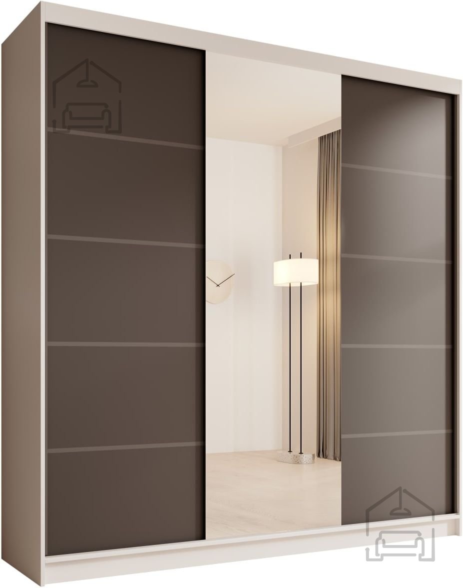 Der Schrank mit den Maßen 200x58x215 cm bietet reichlich Platz für Kleidung, Schuhe und Accessoires. Durch seine Höhe wird der Raum optimal genutzt, und dank der Schiebetüren passt er auch wunderbar in kleinere Zimmer, wo jeder Zentimeter zählt. Der Kontrast zwischen Schwarz und Weiß betont das moderne Erscheinungsbild und harmoniert mit verschiedensten Einrichtungsstilen – von minimalistisch bis klassisch.