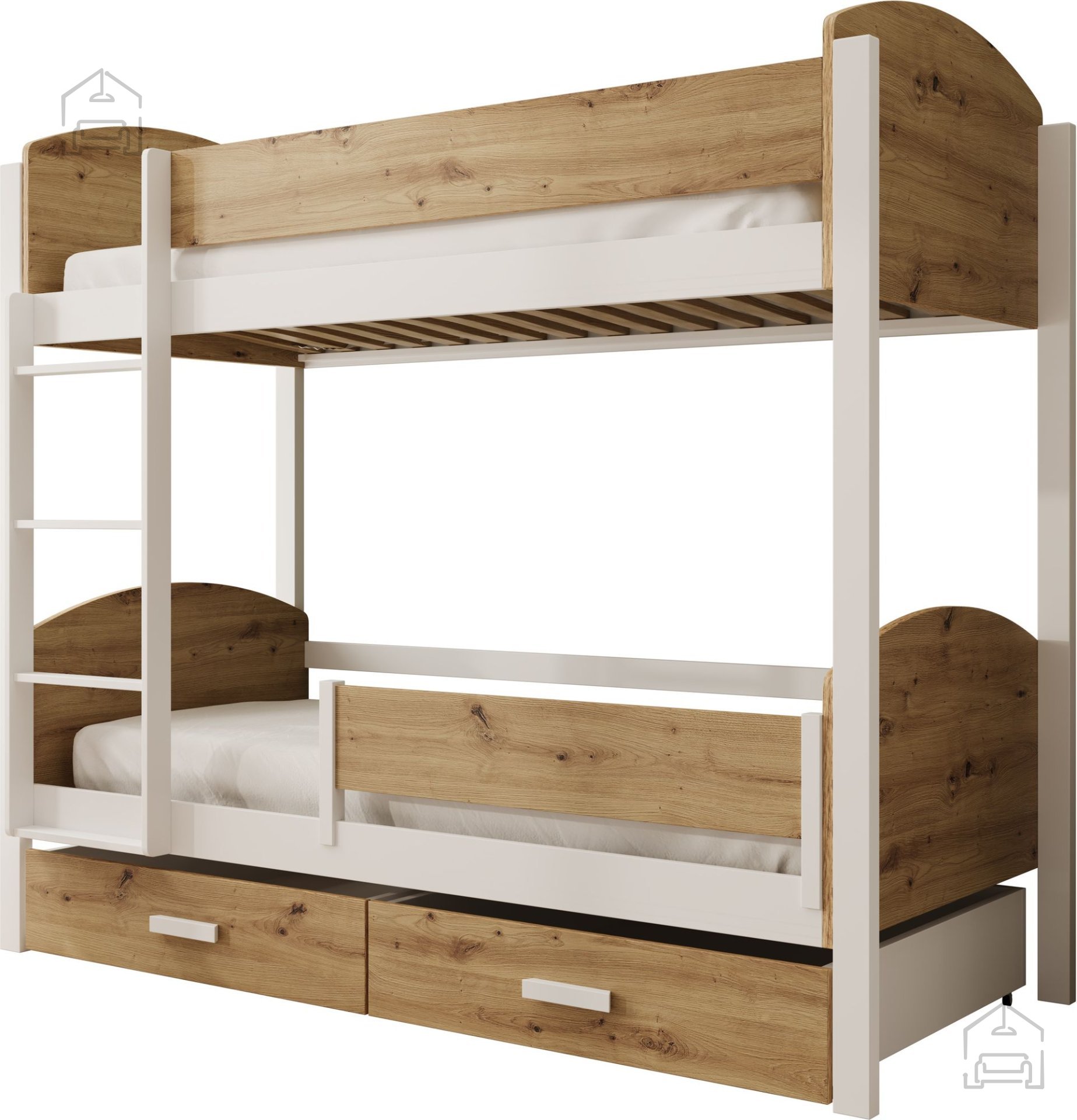 Einer der größten Pluspunkte dieses Bettes sind die zwei großzügigen Schubladen unter dem unteren Bett. Sie eignen sich ideal zur Aufbewahrung von Bettwäsche, Spielzeug, Kleidung oder anderen Kindersachen und helfen dabei, Ordnung im Zimmer zu halten. Zusätzlich ist die Matratze im Set bereits enthalten – so haben Sie mit dem Kauf alles, was Ihre Kinder für einen erholsamen Schlaf brauchen.
