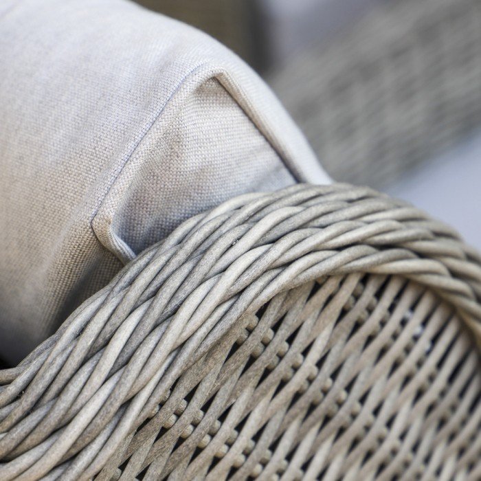 Das stabile Aluminiumgestell sorgt für Leichtigkeit und hohe Standfestigkeit, während die Polyrattan-Oberfläche für ihre Widerstandsfähigkeit gegen UV-Strahlung, Regen und Temperaturschwankungen bekannt ist. Polyrattan kombiniert die natürliche Optik von Rattan mit deutlich besserer Haltbarkeit – dadurch ist das Set Verdi äußerst pflegeleicht und bewahrt lange sein ursprüngliches Aussehen. Alle Materialien sind so gewählt, dass sie auch anspruchsvolle Außenbedingungen problemlos aushalten, ohne an Eleganz oder Komfort zu verlieren.