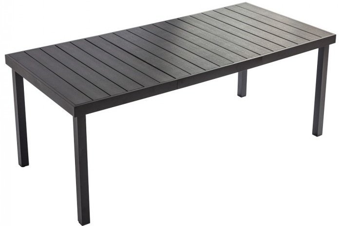 Das Herzstück des Sets ist der Tisch, der durch seine stabile und dennoch leichte Aluminiumkonstruktion besticht. Aluminium ist besonders korrosionsbeständig – ein entscheidender Vorteil für Möbel, die Wind und Wetter ausgesetzt sind. Die schwarze Komposit-Tischplatte sorgt für einen zeitgemäßen Look und ist zudem pflegeleicht.